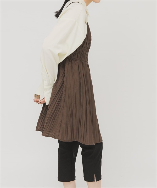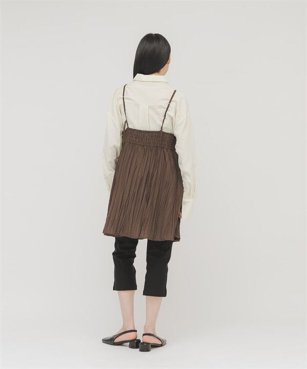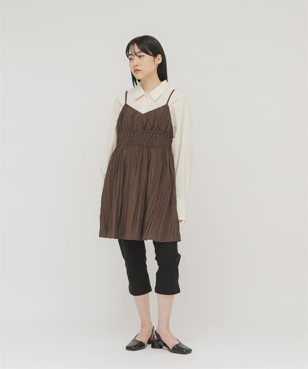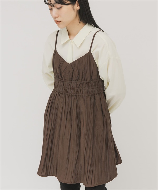 抽褶細肩帶迷你洋裝