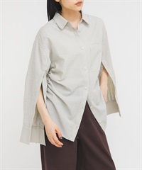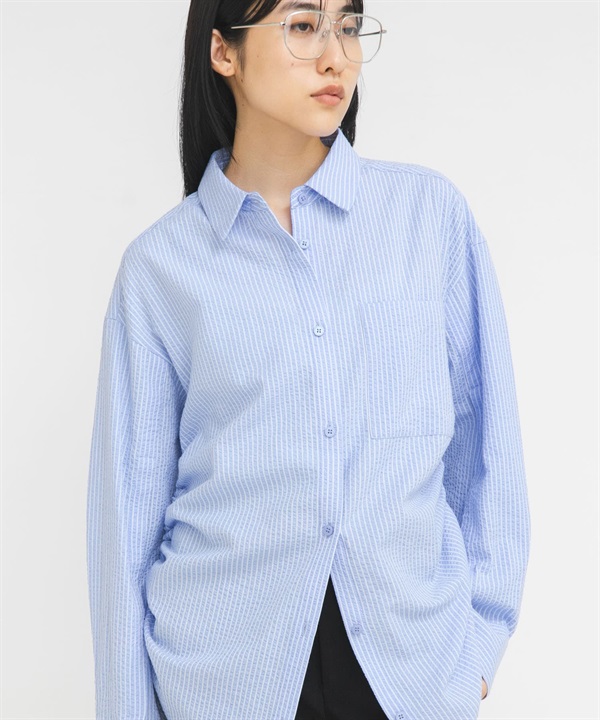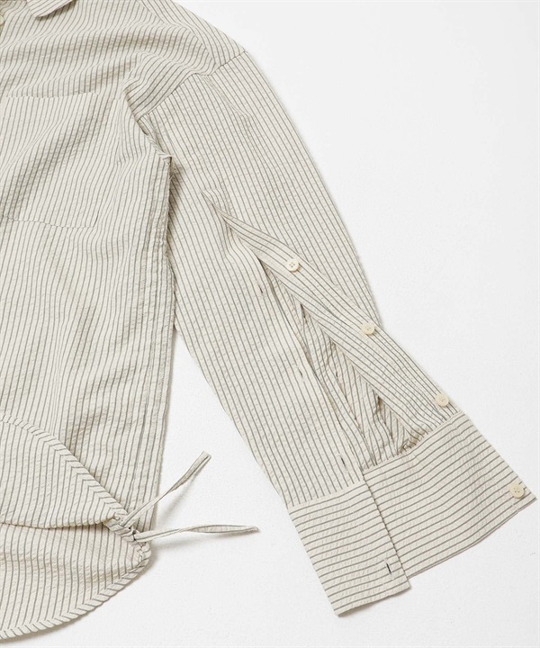 側邊抽繩泡泡紗襯衫