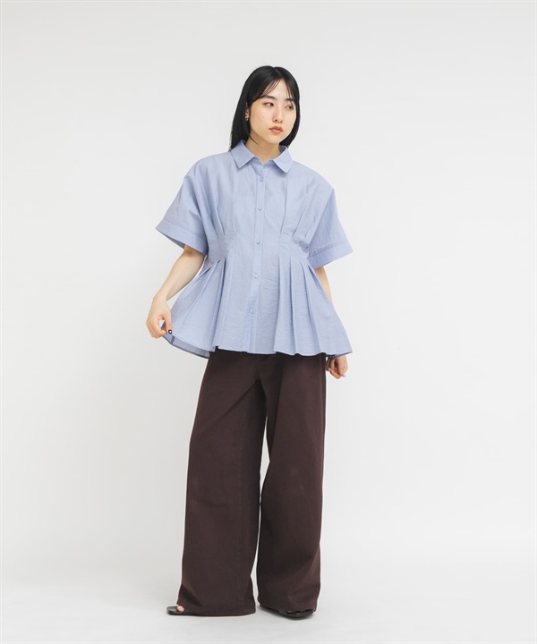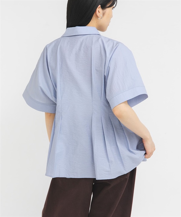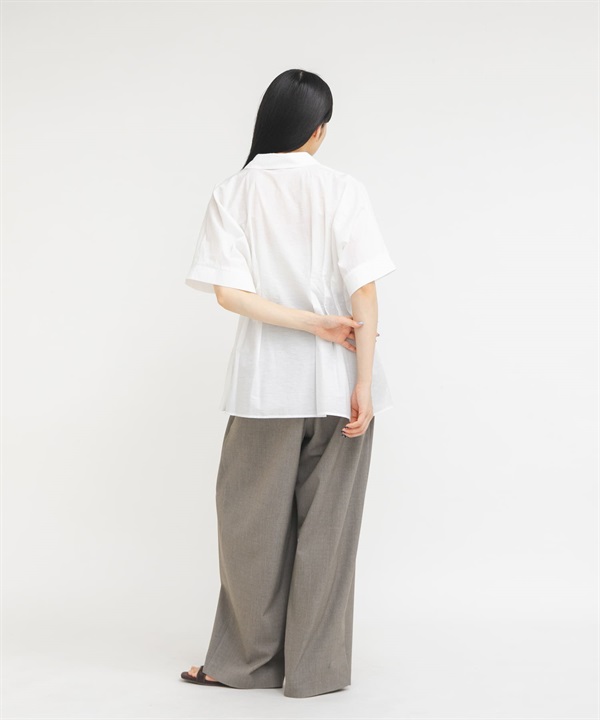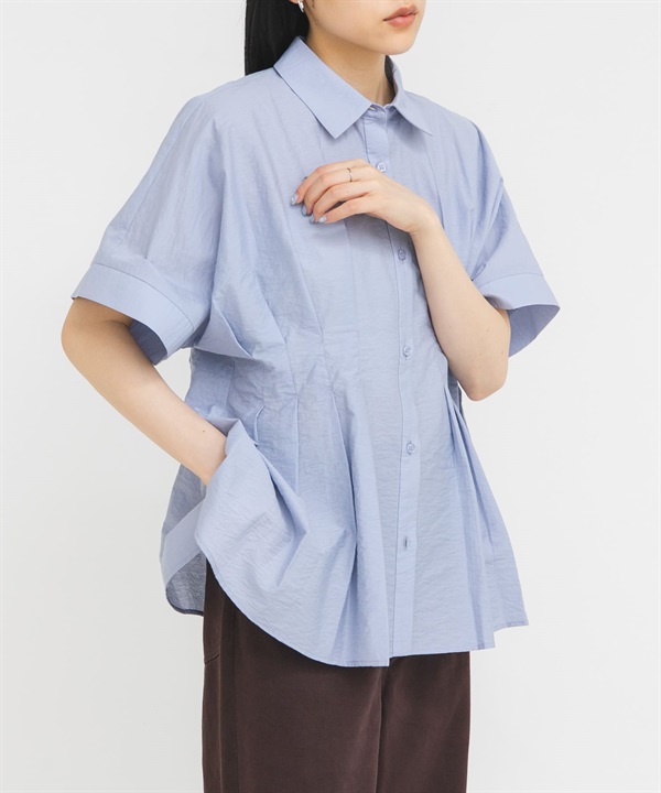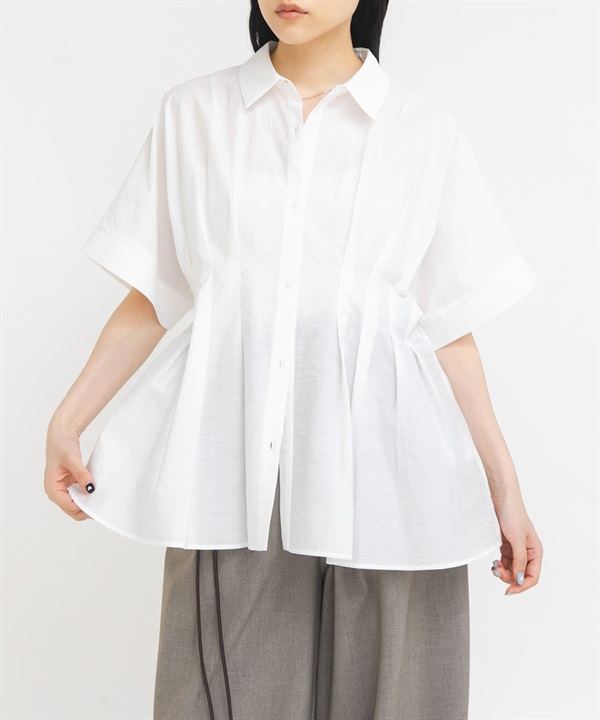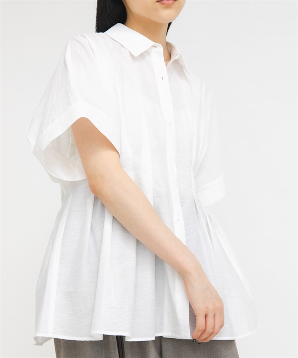 腰部打褶蝙蝠袖罩衫