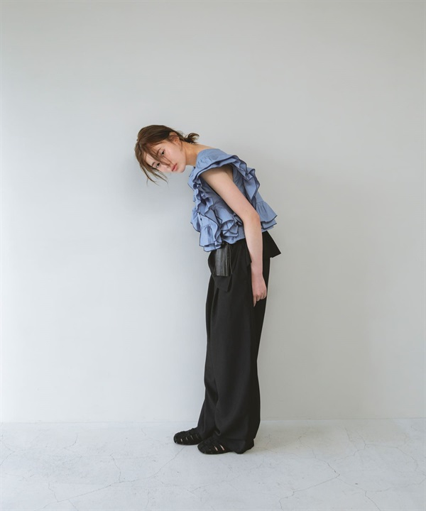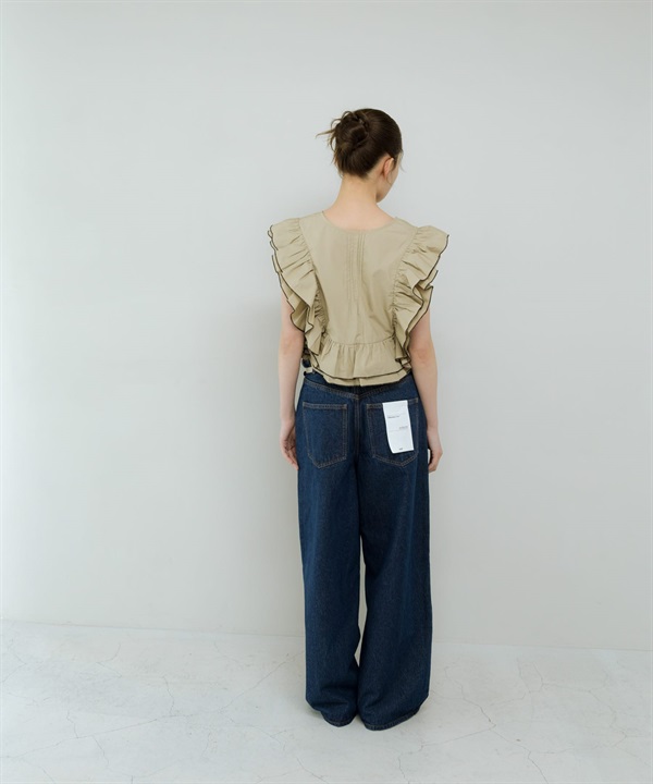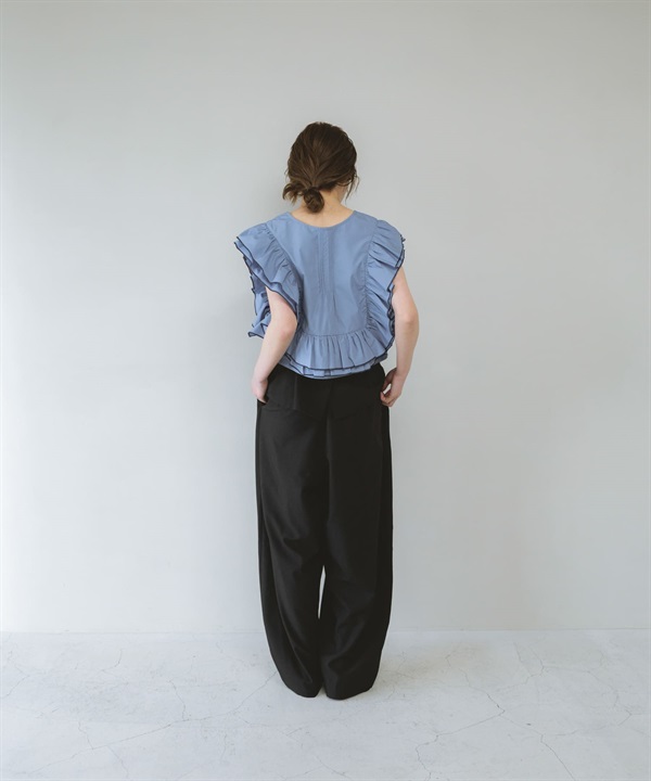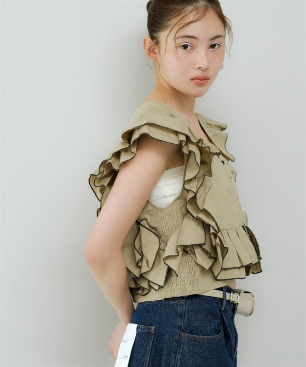 2WAY配色荷葉邊罩衫