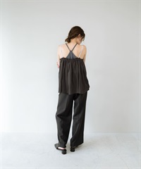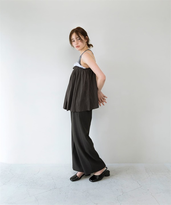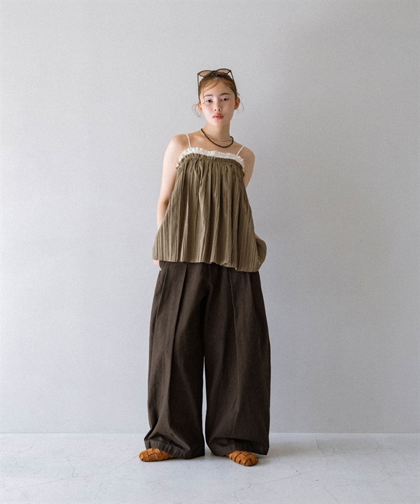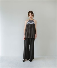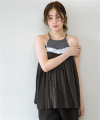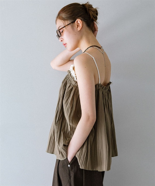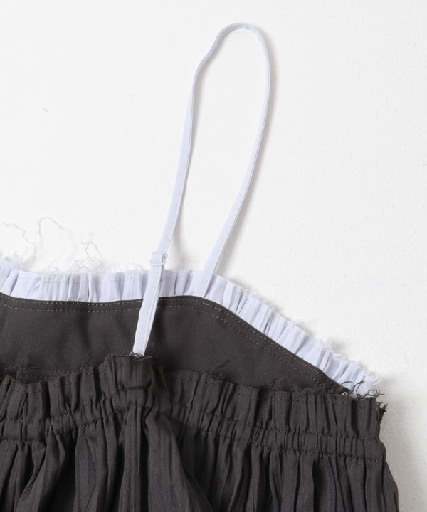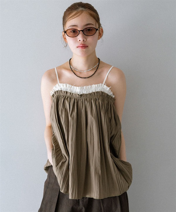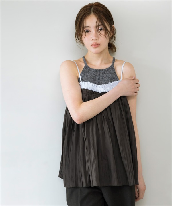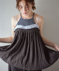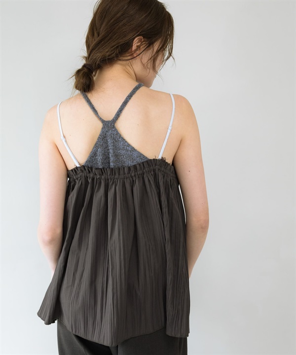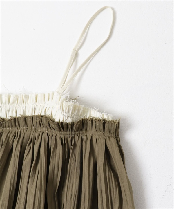配色縐縮細肩帶背心