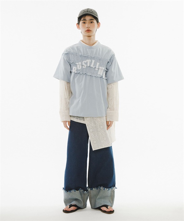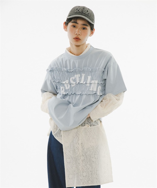 【改造風的抽褶設計及LOGO令人眼睛一亮的上衣】