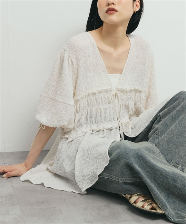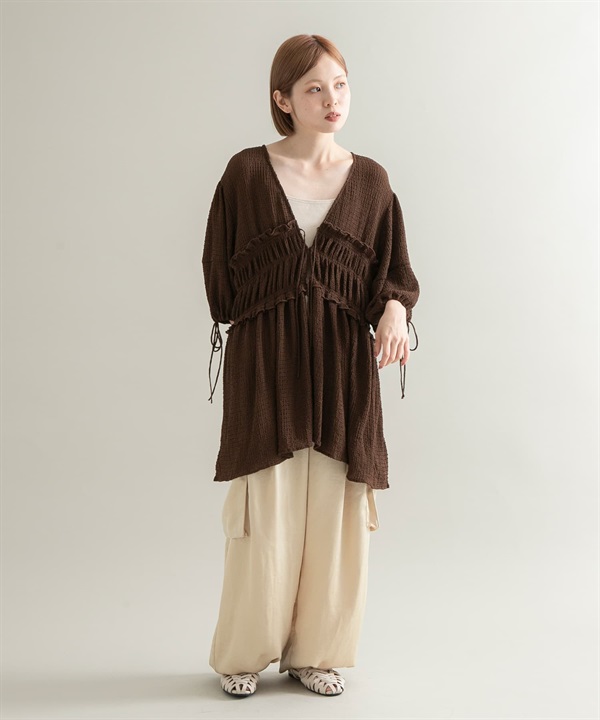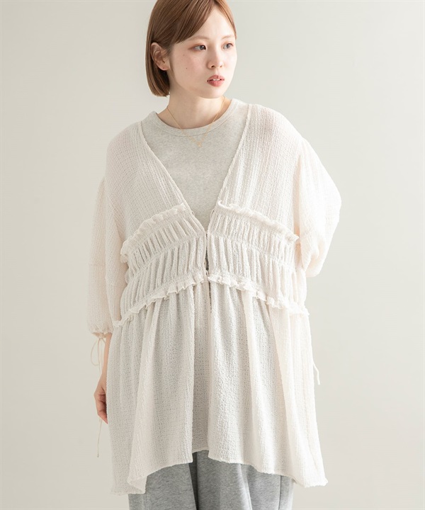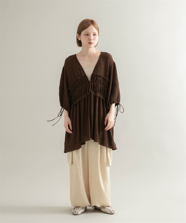 棉質巴里紗碎褶罩衫