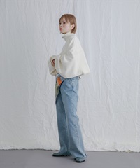 棉質萊賽爾抽繩寬版牛仔褲