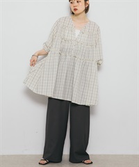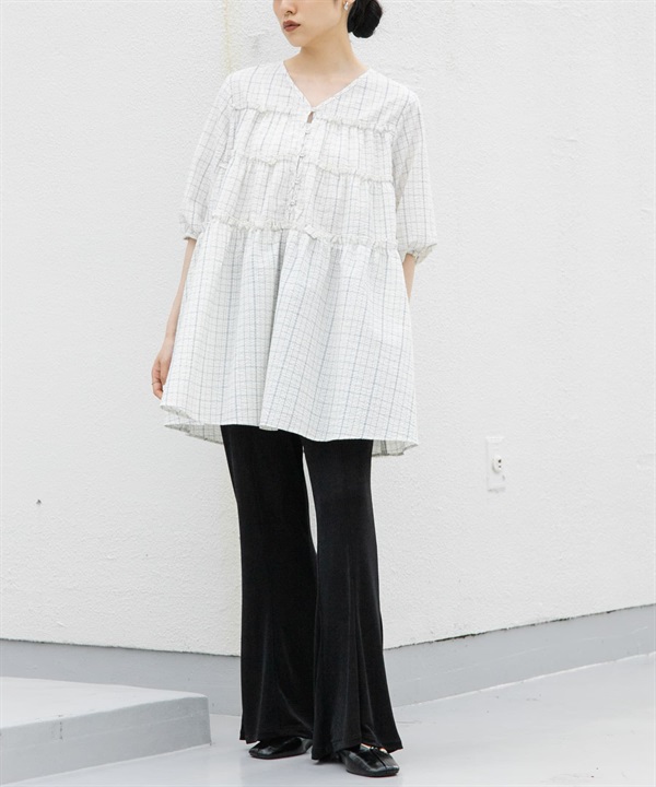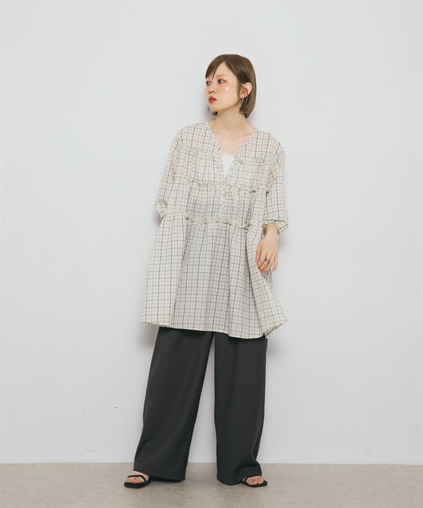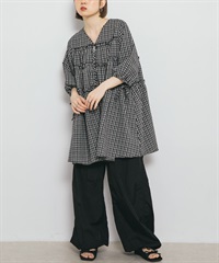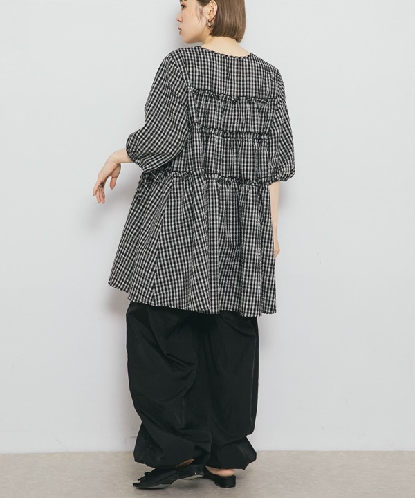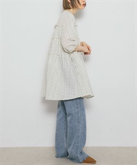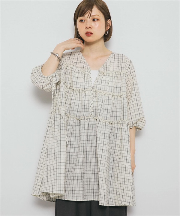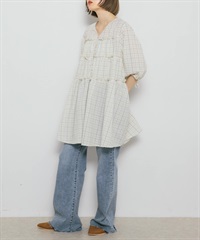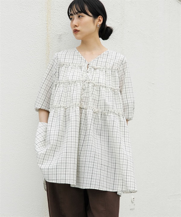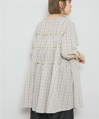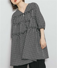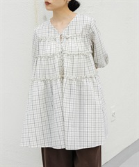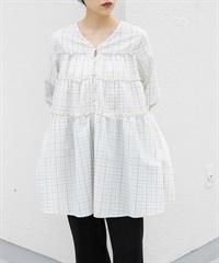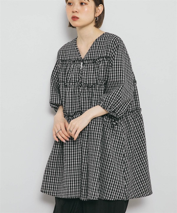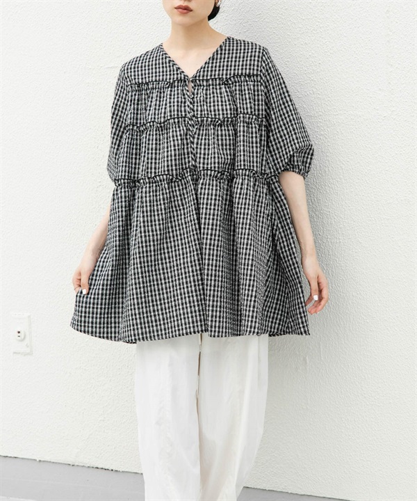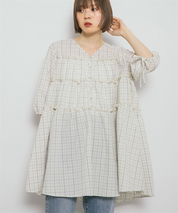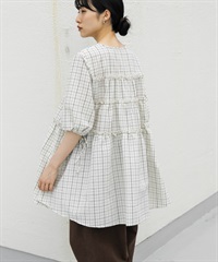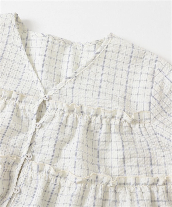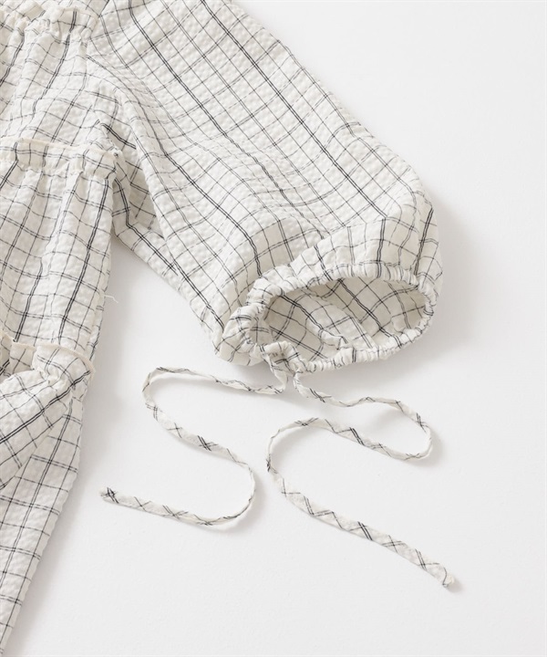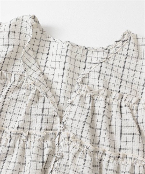 泡泡紗格紋迷你洋裝