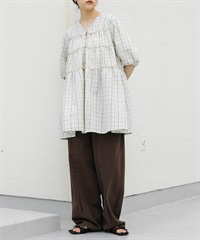 棉質背面打褶法式袖套衫