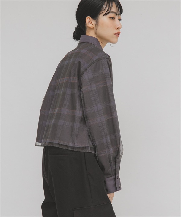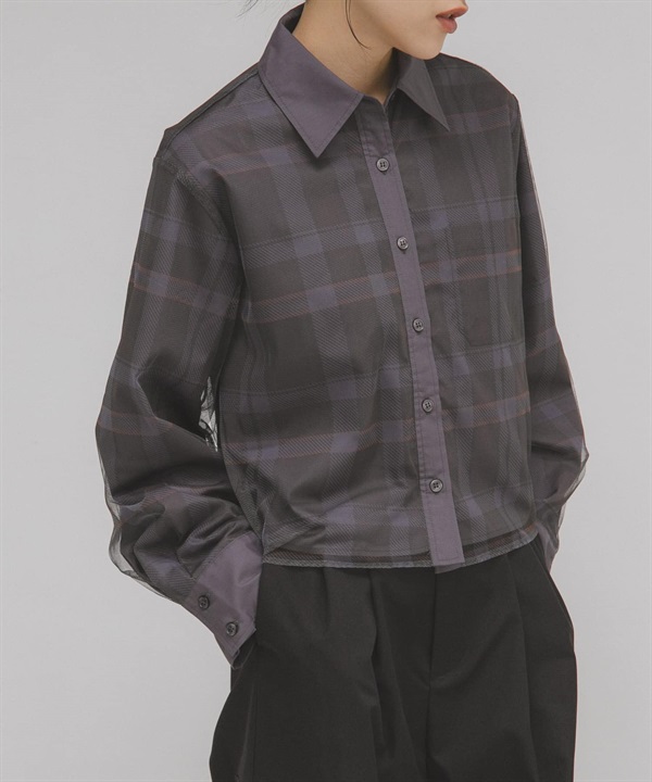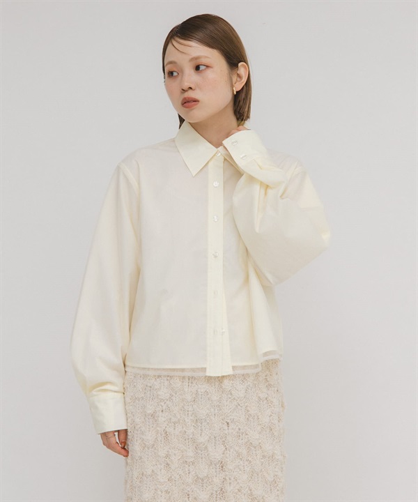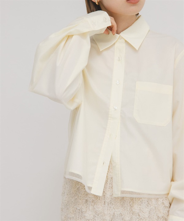 薄紗層次短版襯衫