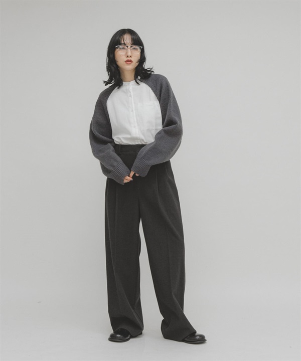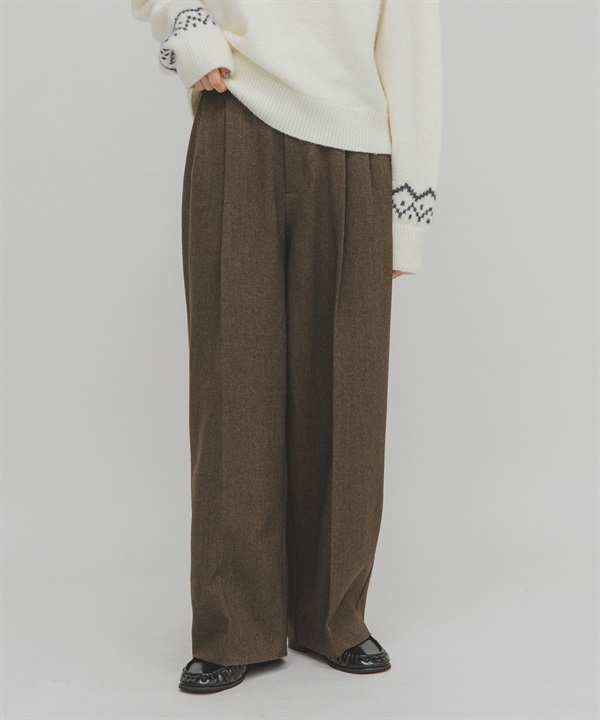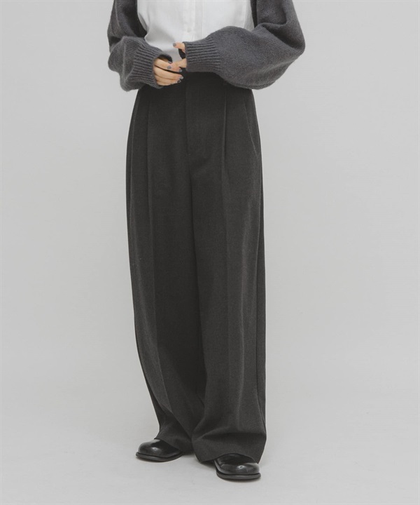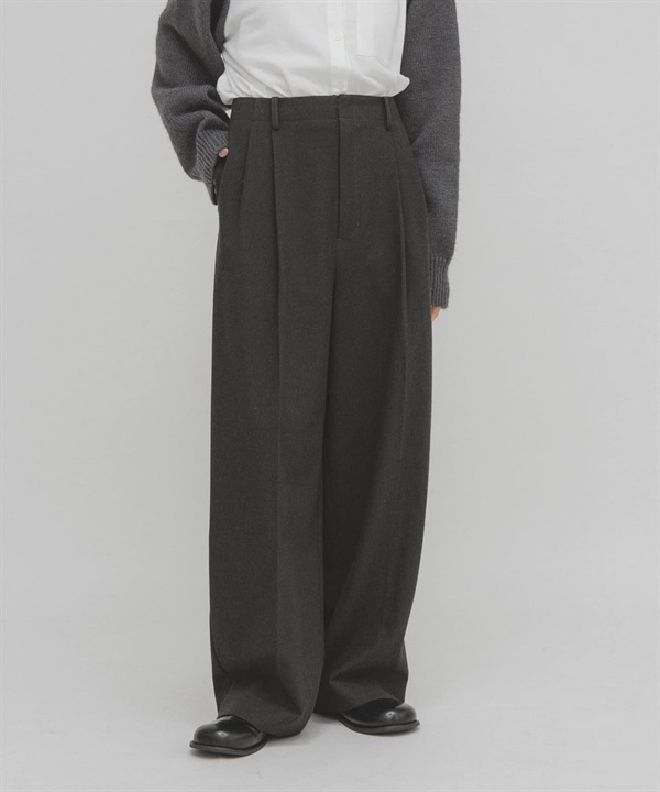 【Ivy推薦】混毛料打褶碎褶直筒褲