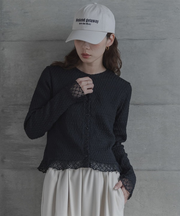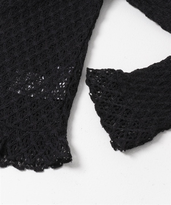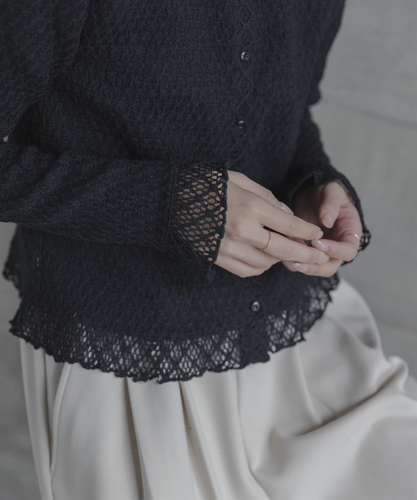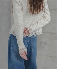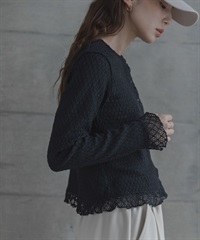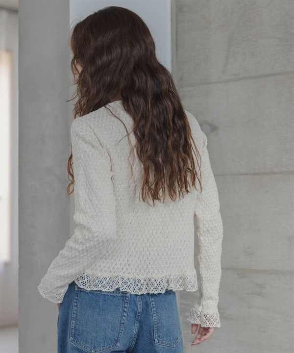 蕾絲抽褶縫荷葉邊上衣