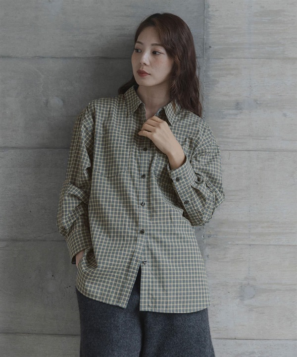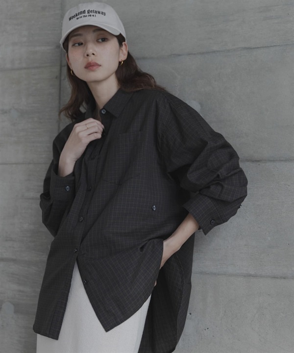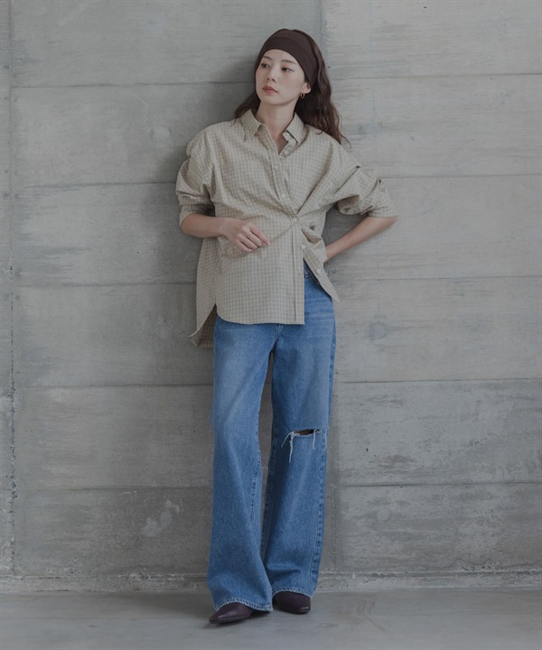 多臂格紋不對稱設計襯衫