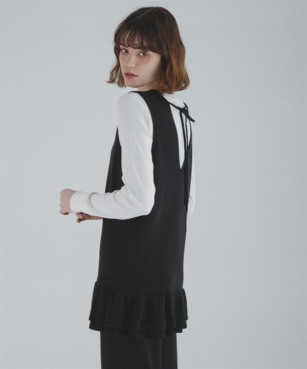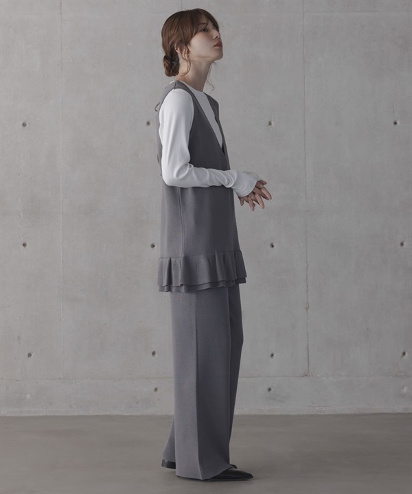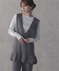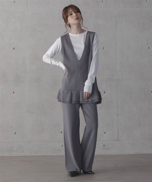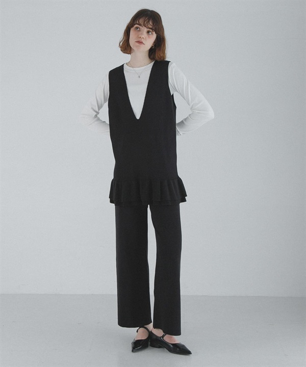 【成套組合】荷葉邊長版針織背心 × 針織褲