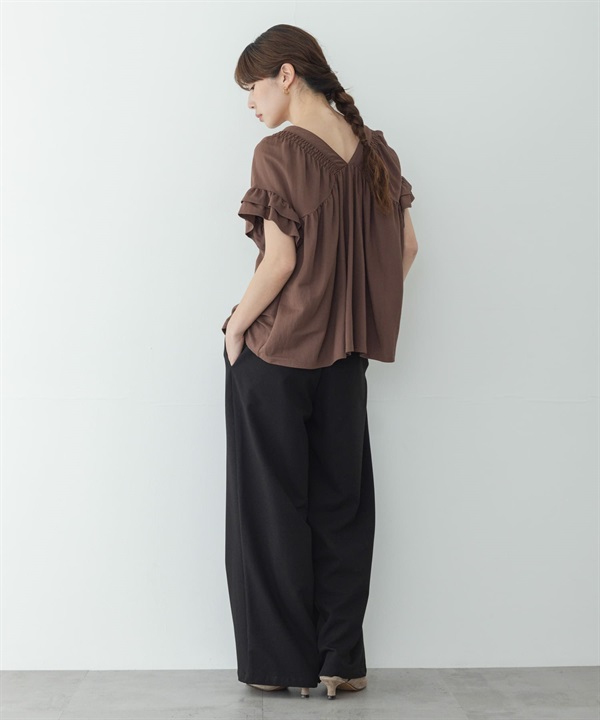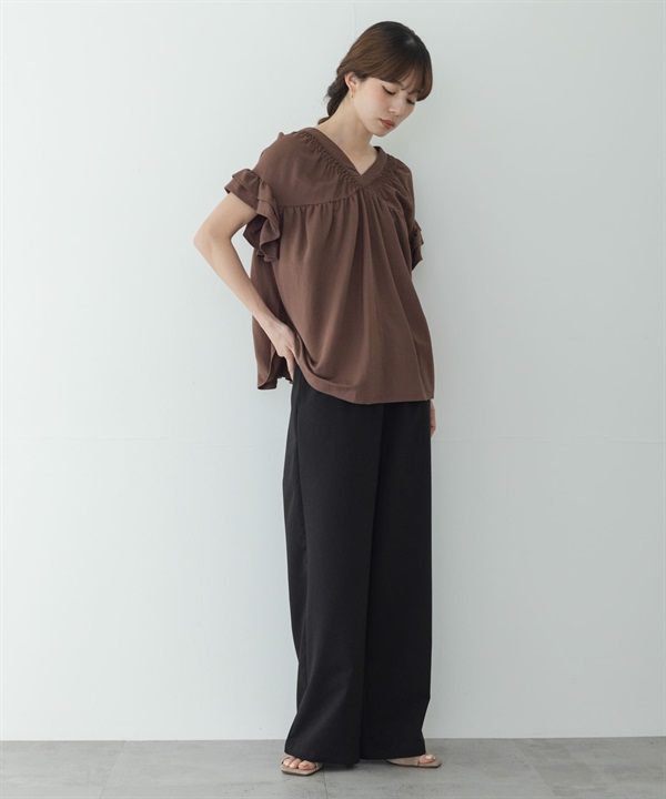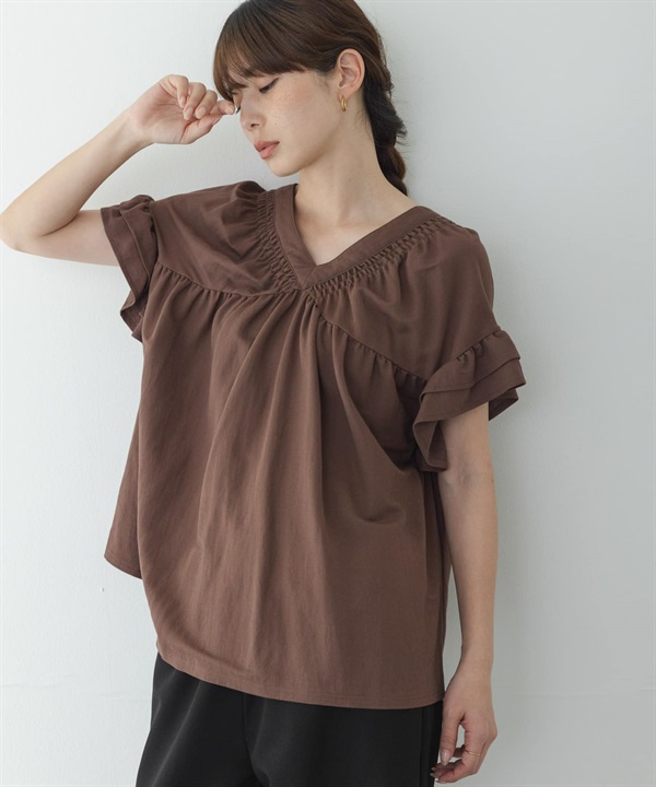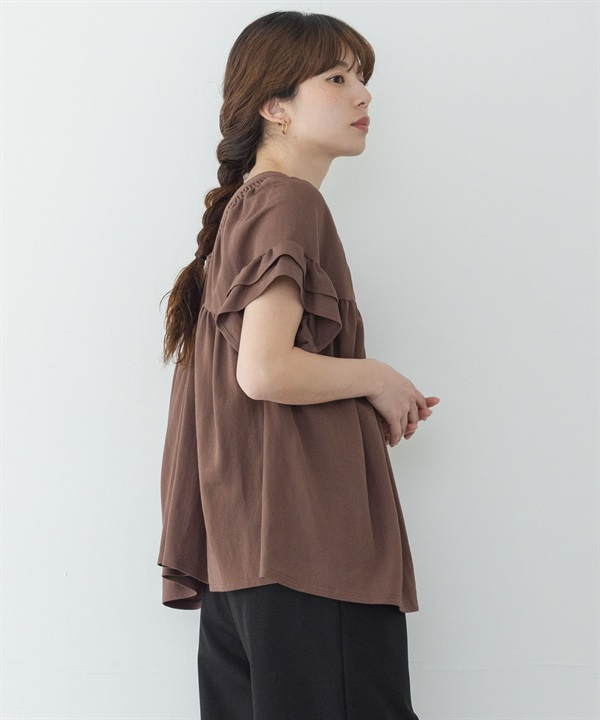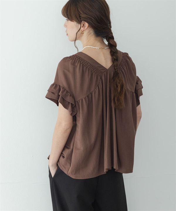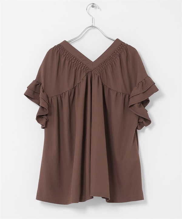 抽褶縫荷葉袖套衫
