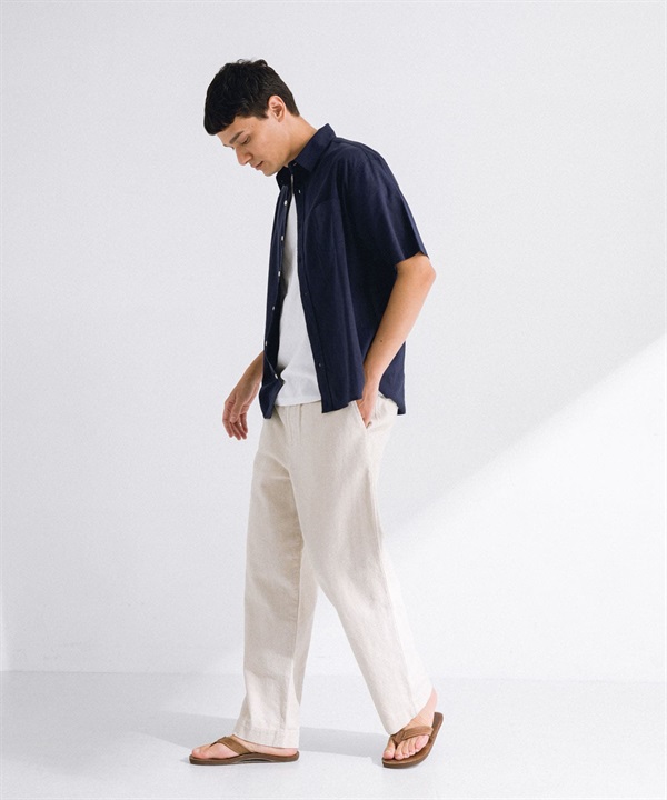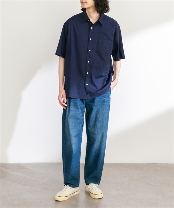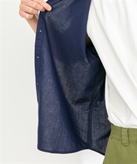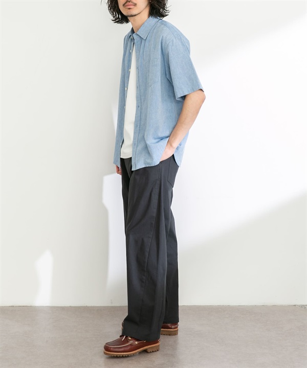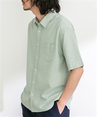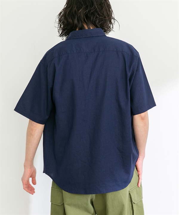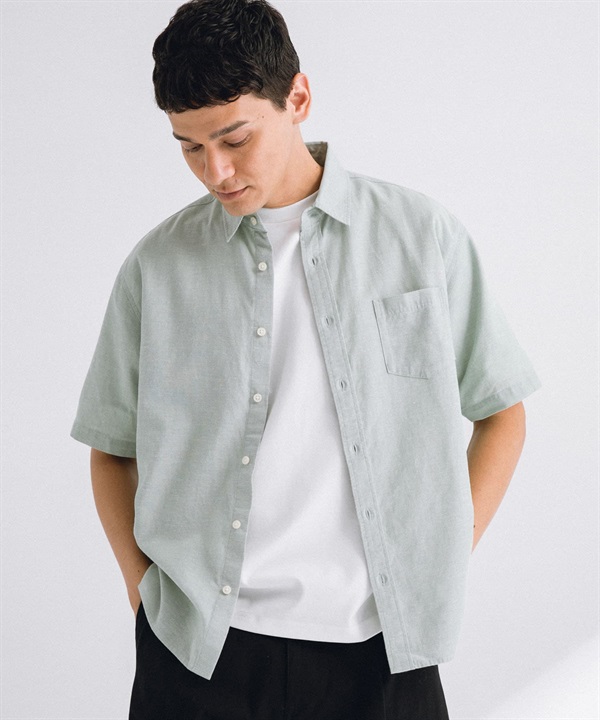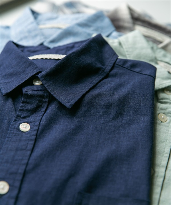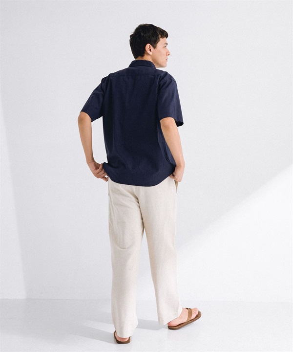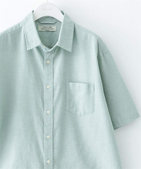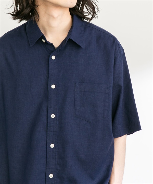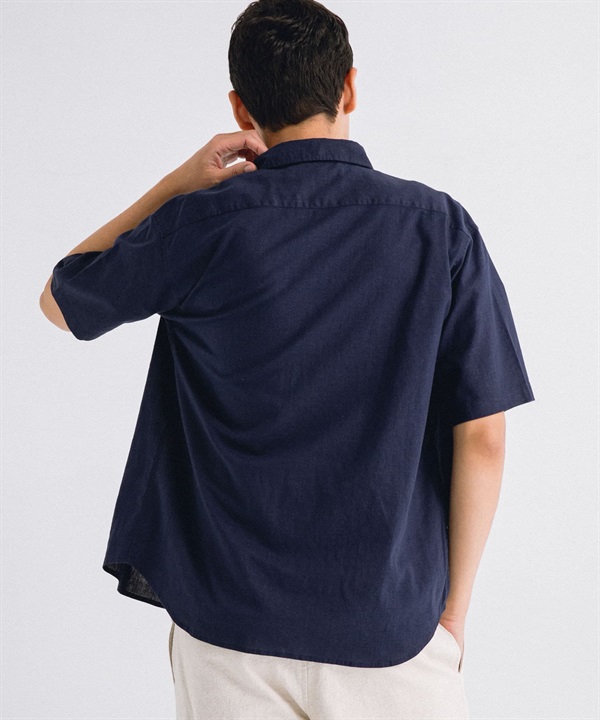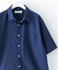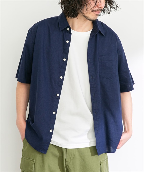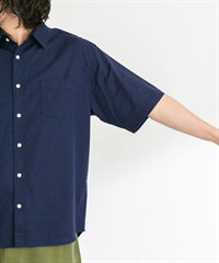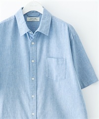 【接觸涼感】混麻料短袖襯衫