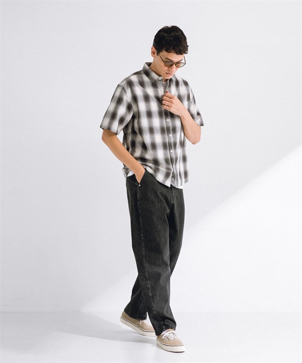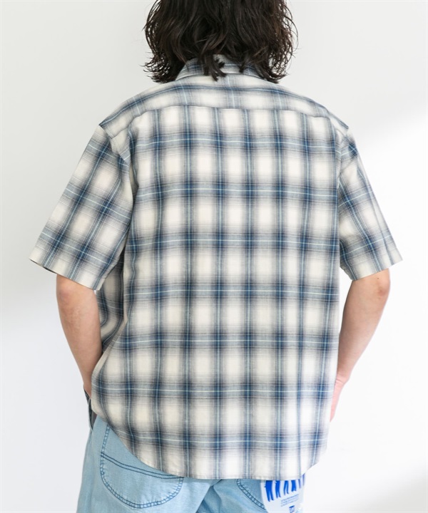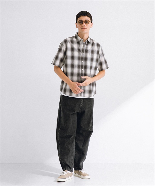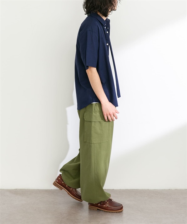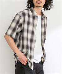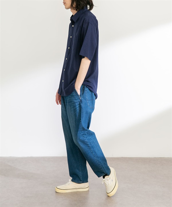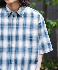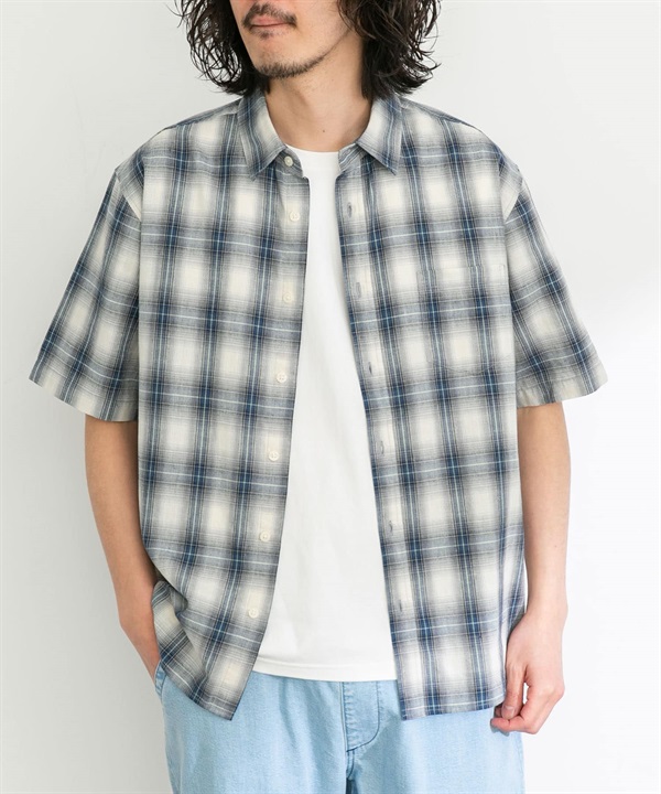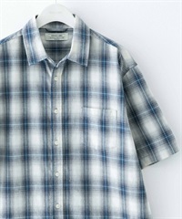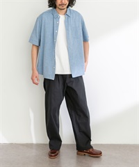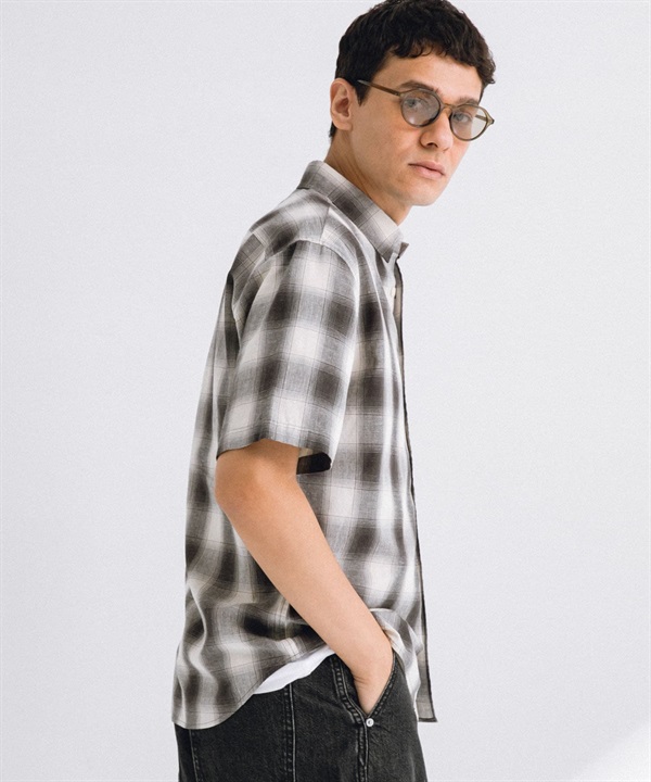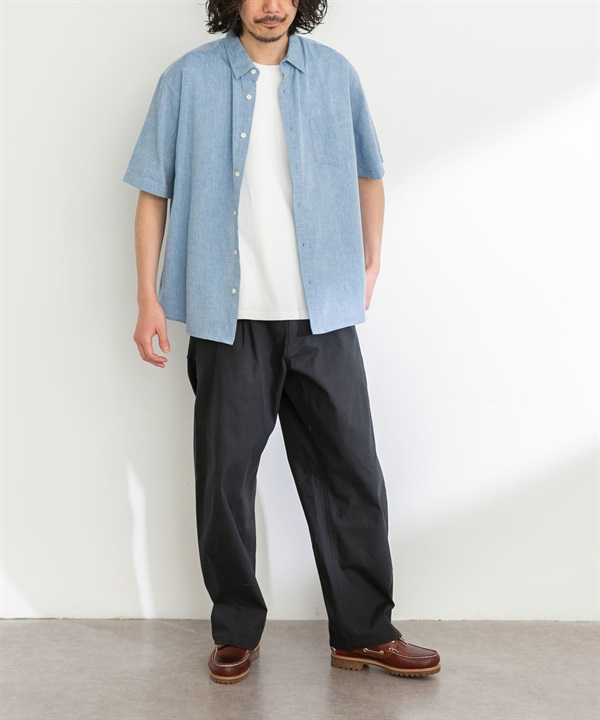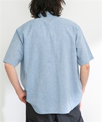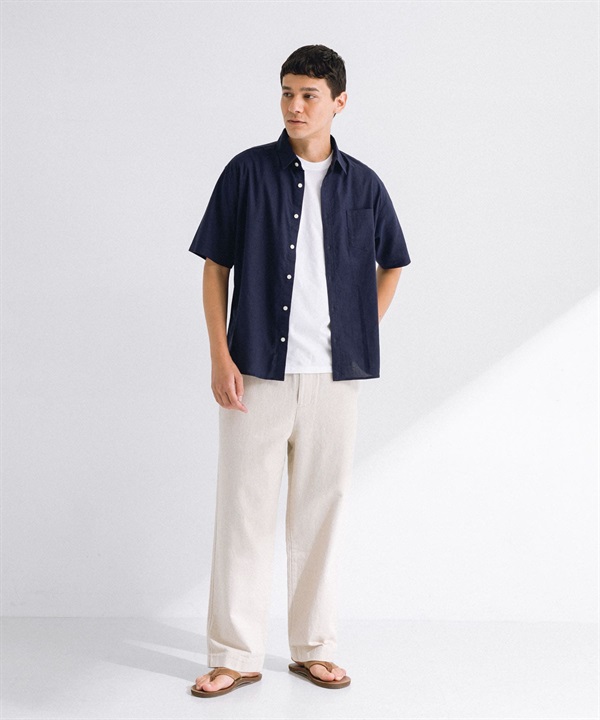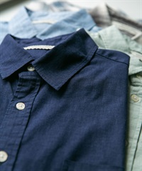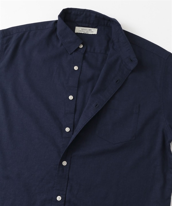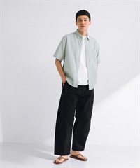 【接觸涼感】混麻料短袖襯衫