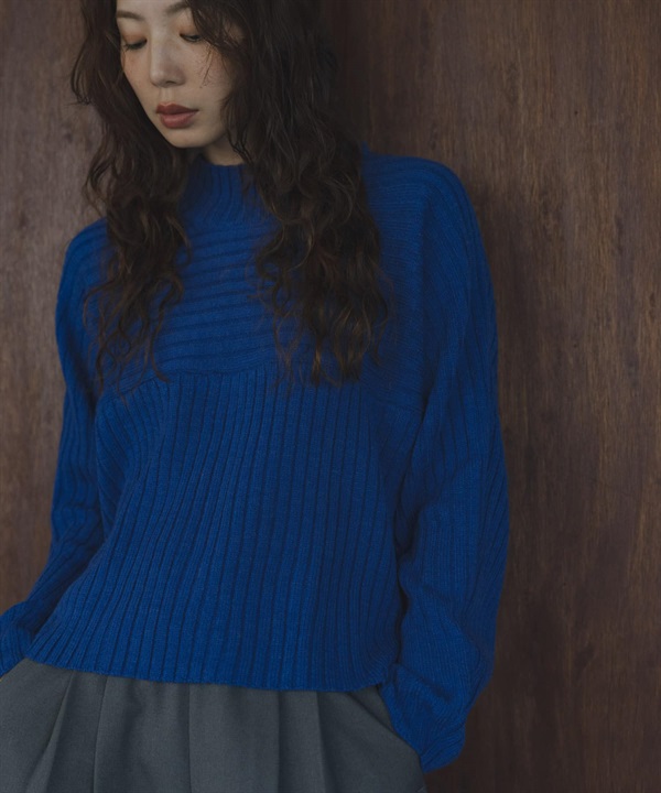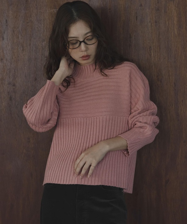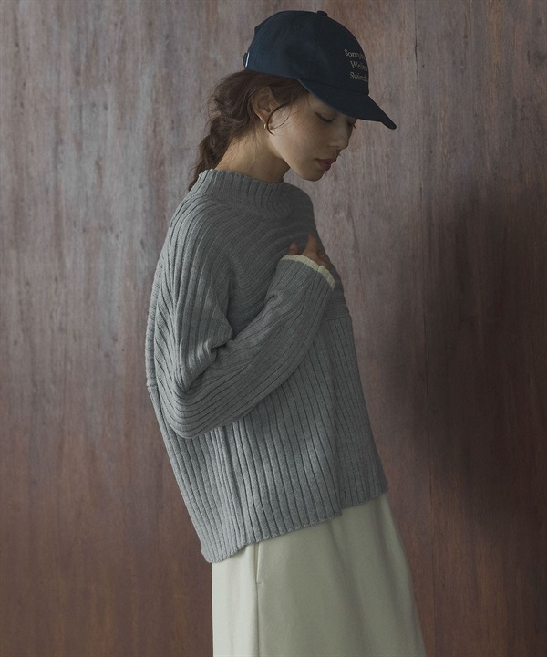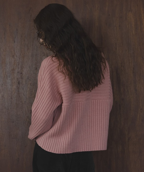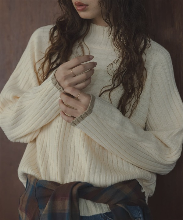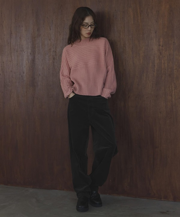 寬羅紋拼接針織衫