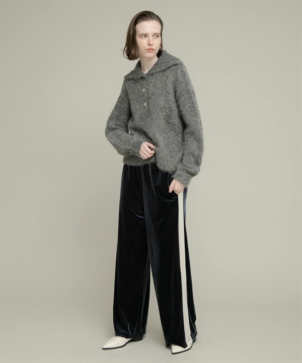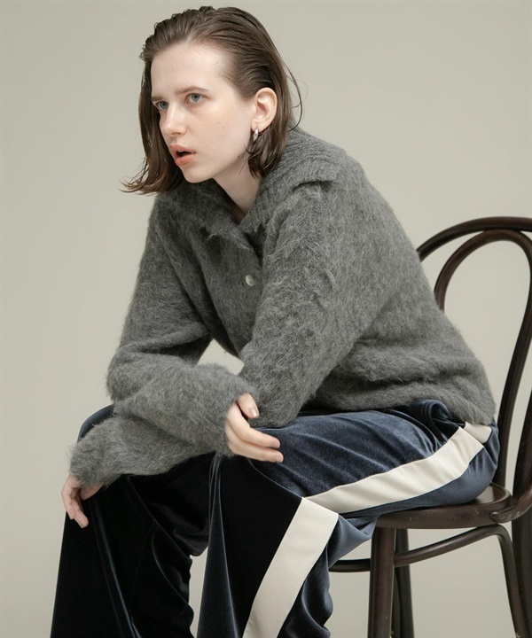 絨毛感V字領緣針織衫