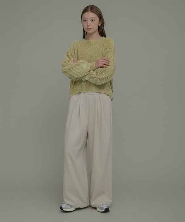 【新色追加】混毛料打褶碎褶直筒褲