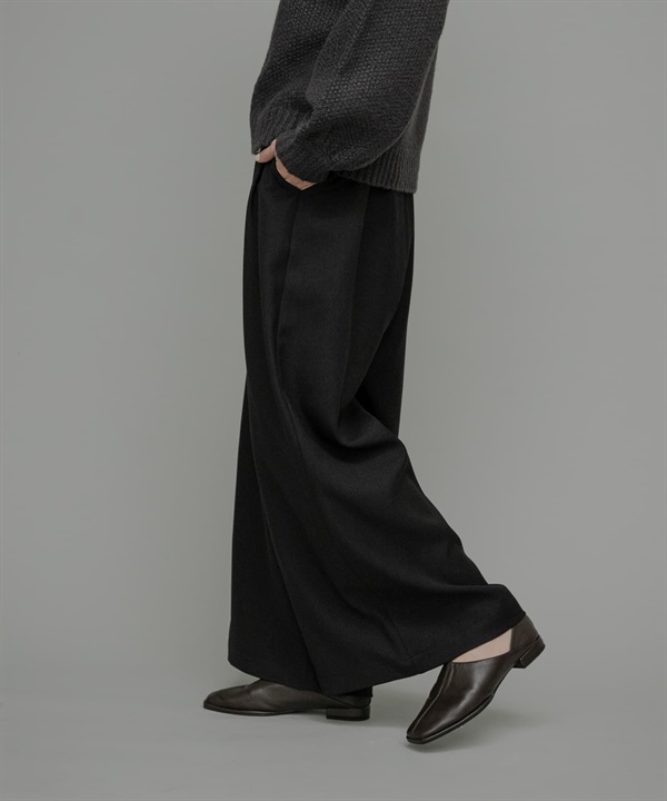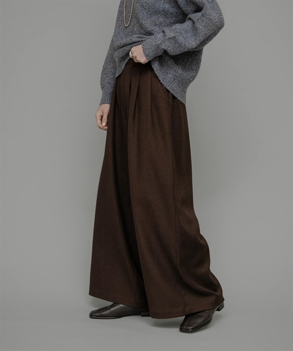 FORK&SPOON 仿羊毛雙褶寬褲