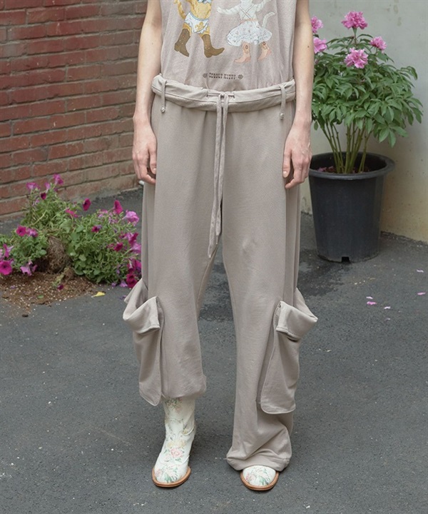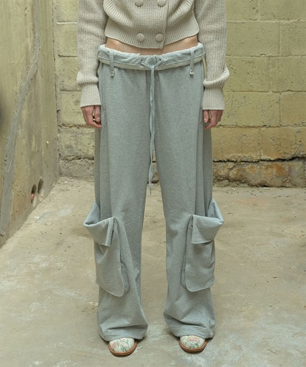 OPEN YY / ROLLED WAIST SWEAT CARGO PANTS