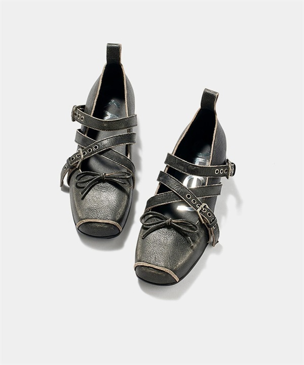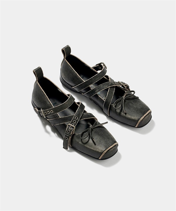 OPEN YY / CROSS BUCKLE BALLET FLATS