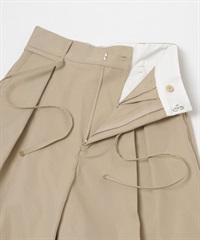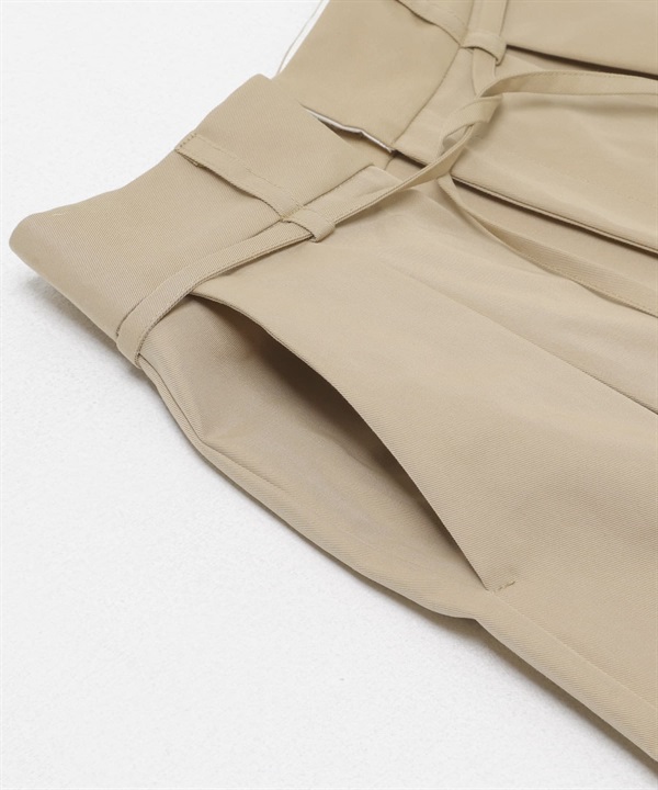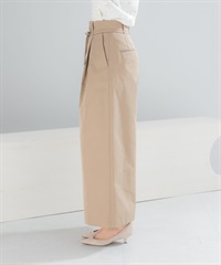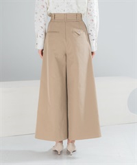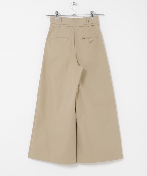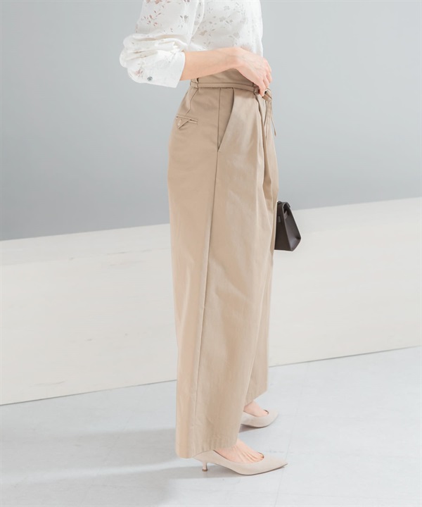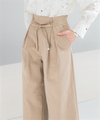 腰帶設計棉質斜紋寬褲