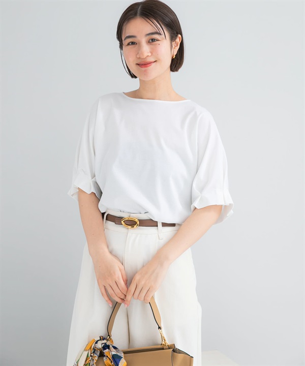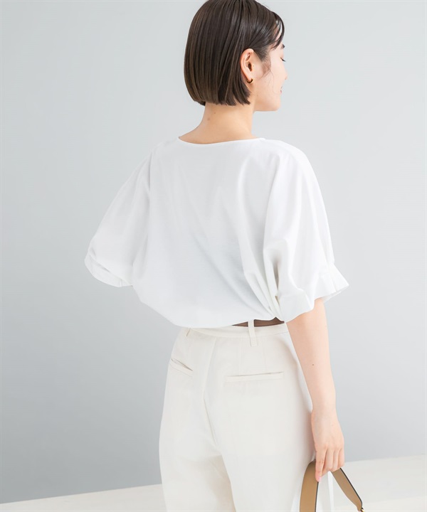 日本製UV CUT涼感打褶袖彈性喬琪紗套衫
