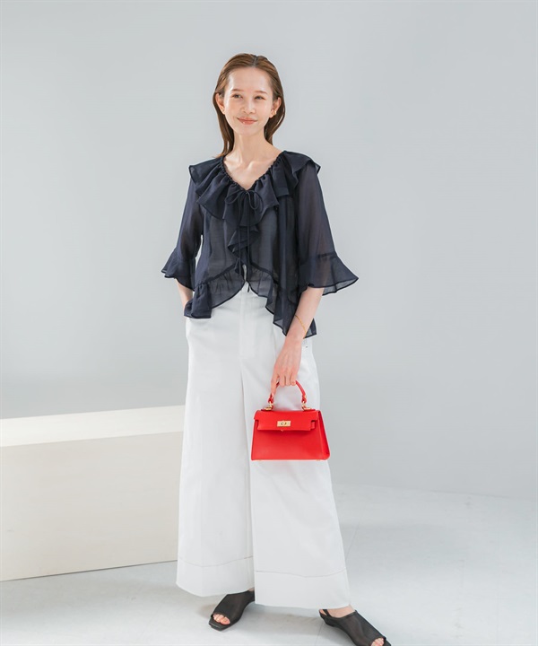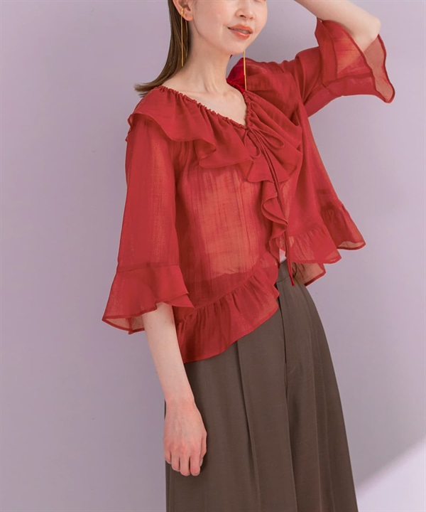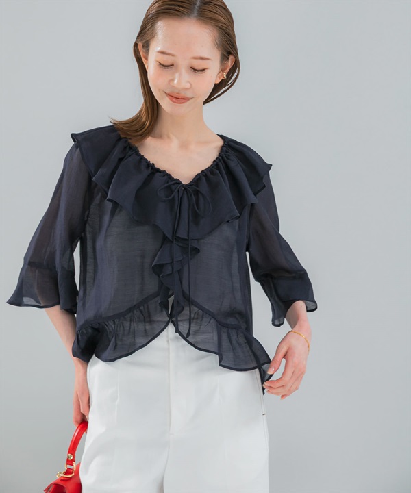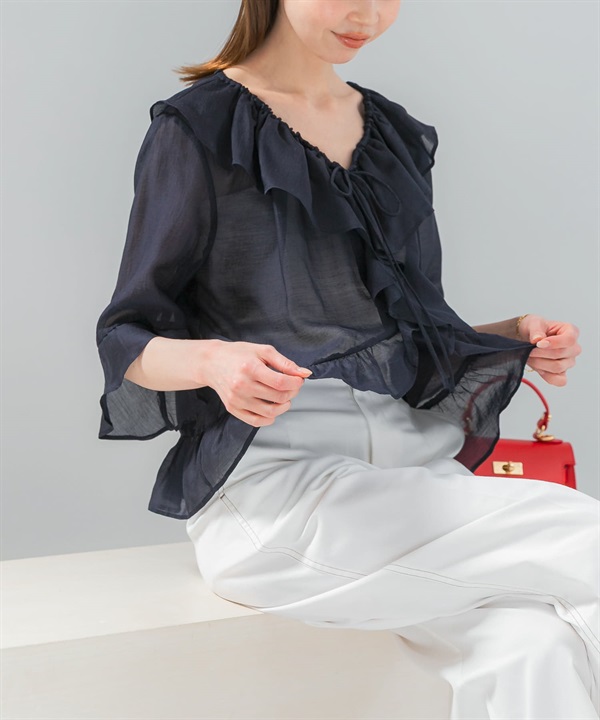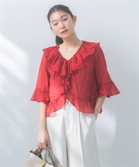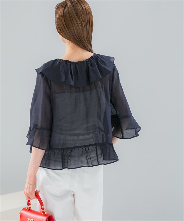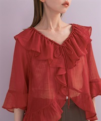 透膚荷葉邊罩衫