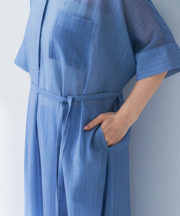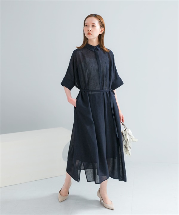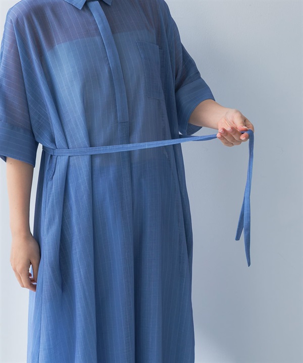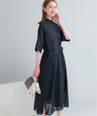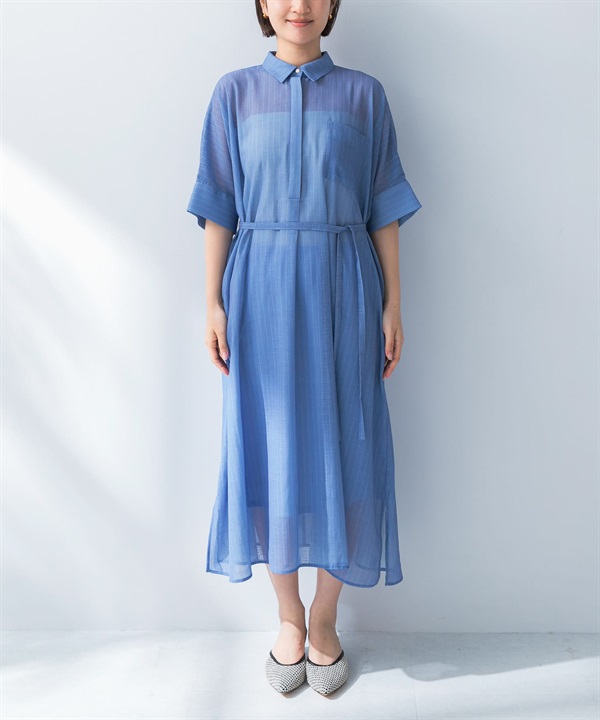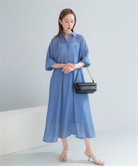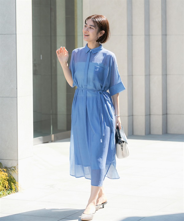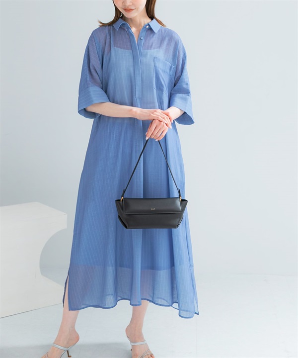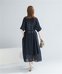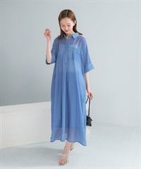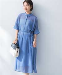 透膚五分袖襯衫洋裝(附襯裙)