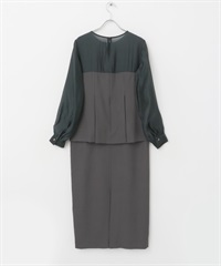 蓬袖拼接洋裝