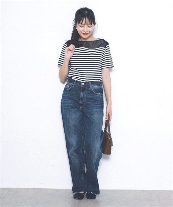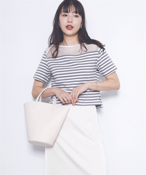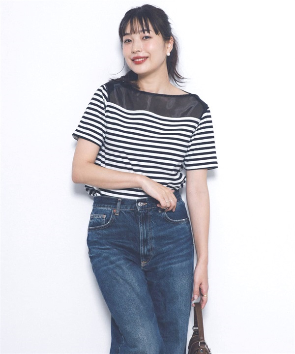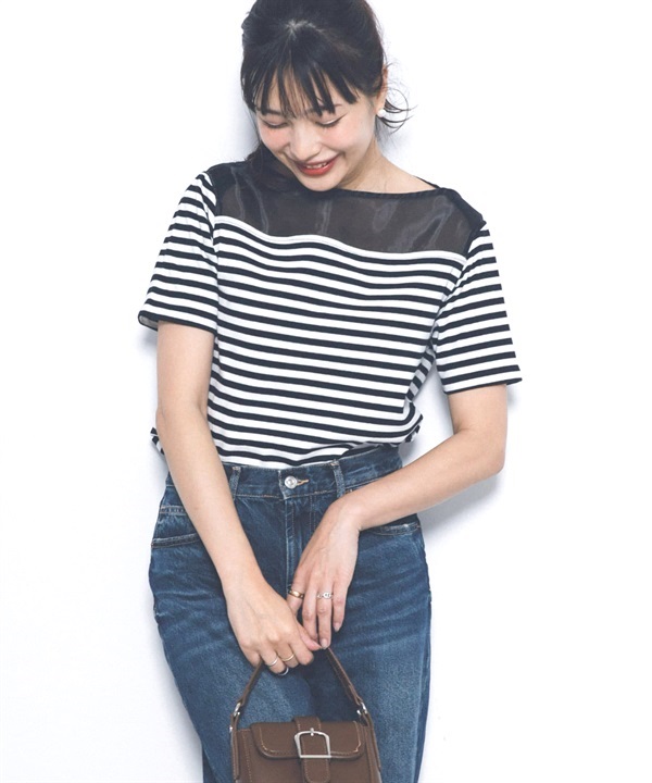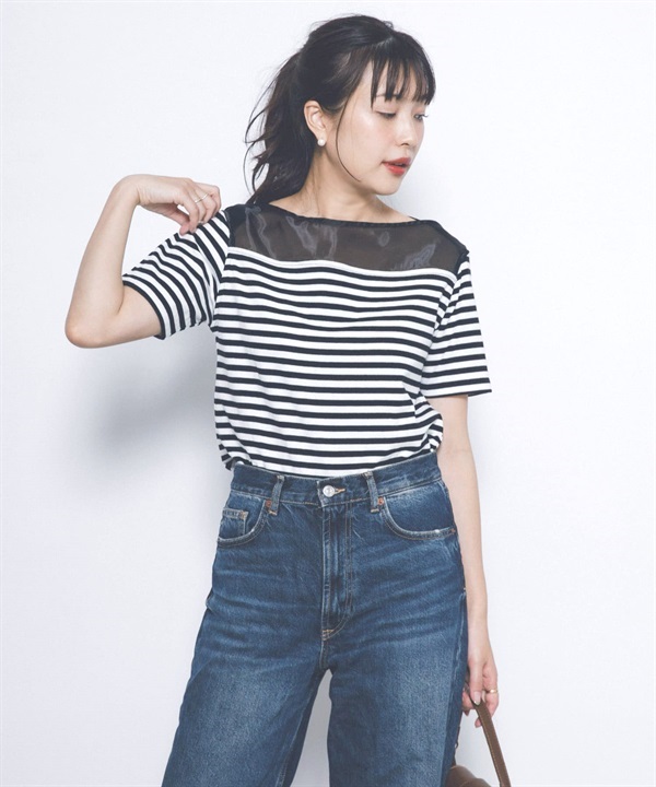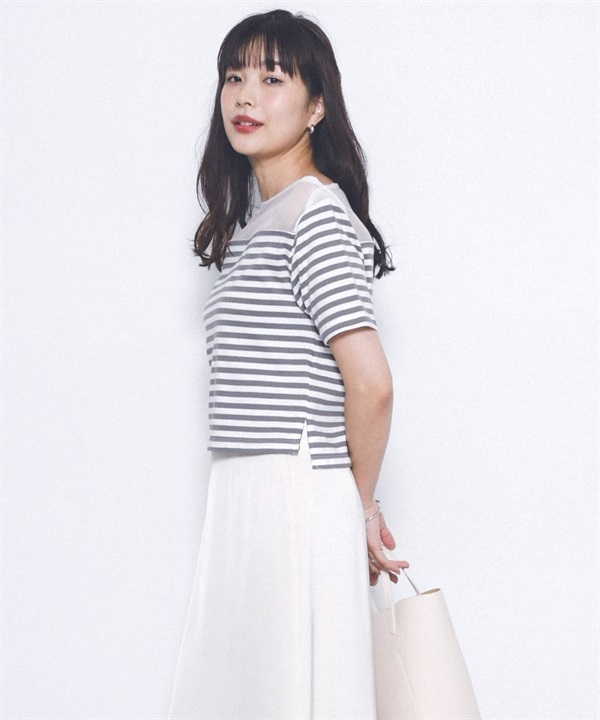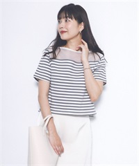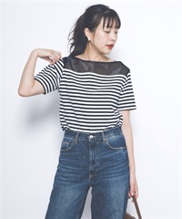 F by ROSSO 透膚拼接橫紋上衣