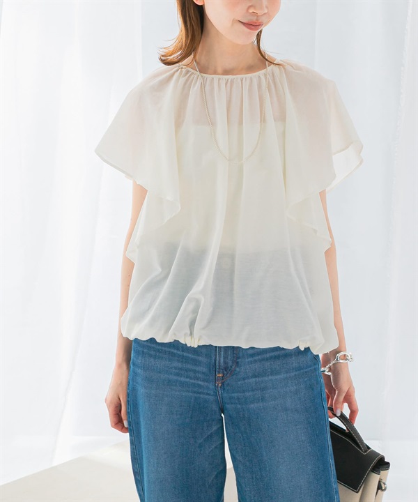 絲棉傘狀袖罩衫