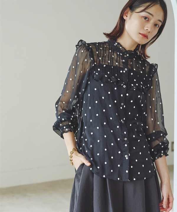 F by ROSSO 蕾絲滾邊大領片襯衫