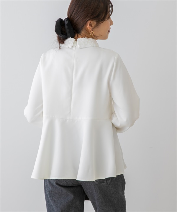 F by ROSSO 蕾絲領荷葉下襬罩衫
