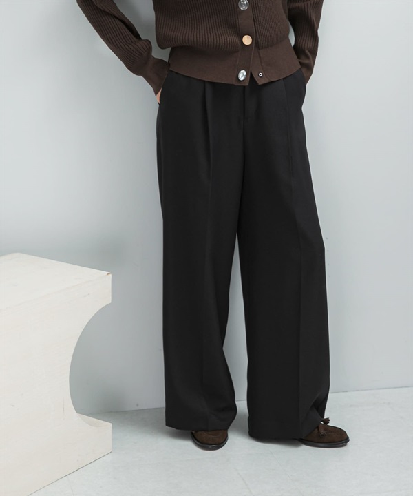 【Ivy推薦】混毛料打褶碎褶直筒褲