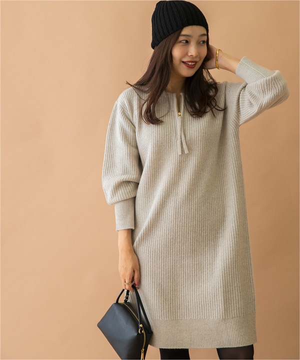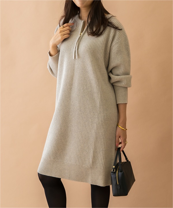 F by ROSSO 漢密爾頓羊毛半拉鍊迷你洋裝