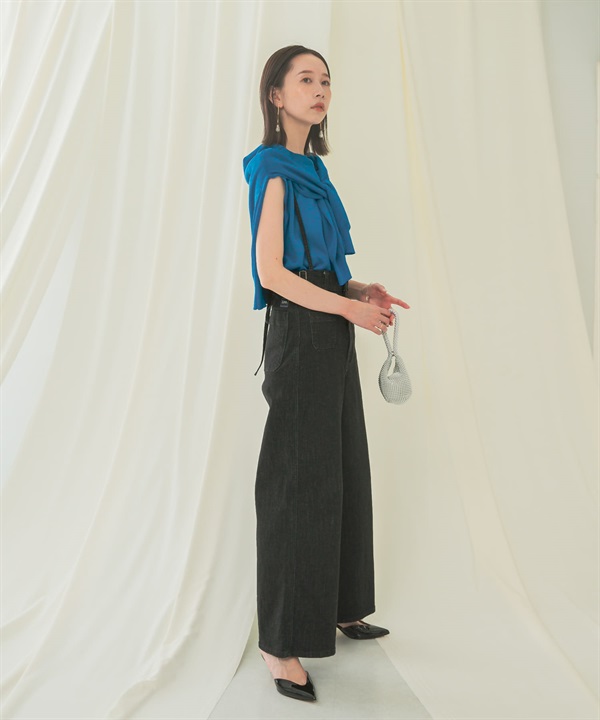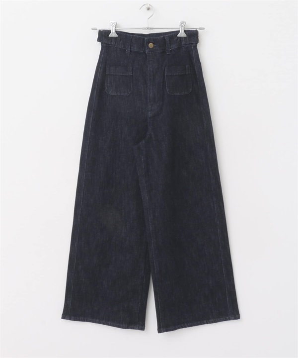 口袋設計牛仔喇叭褲