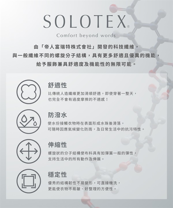 ・選用帝人所開發的高機能 SOLOTEX 材質製作