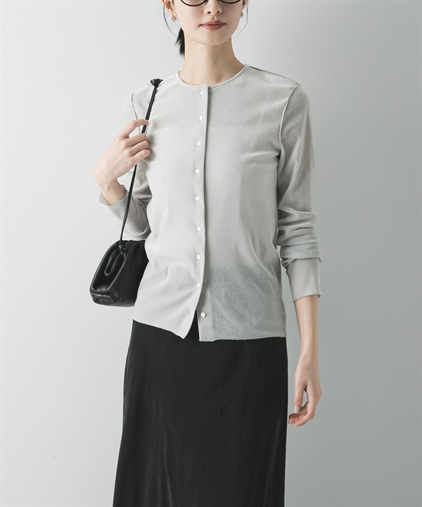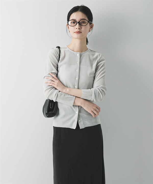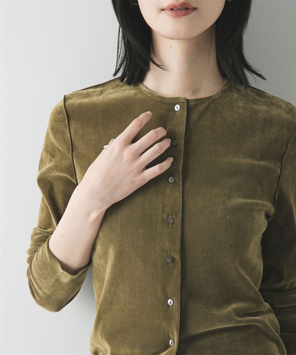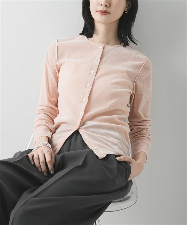 透膚植絨合身開襟衫