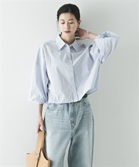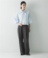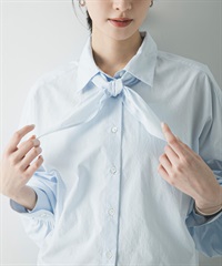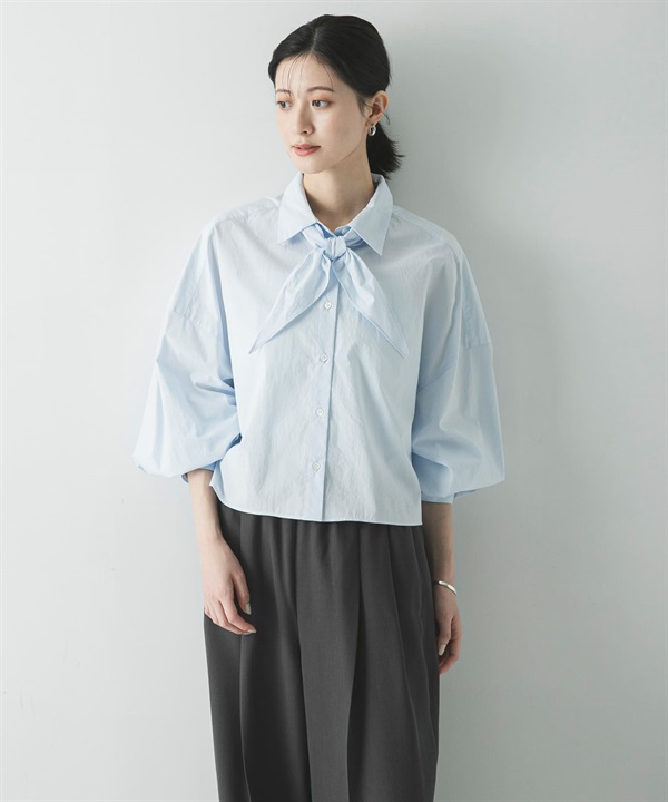 附領巾寬鬆短版襯衫