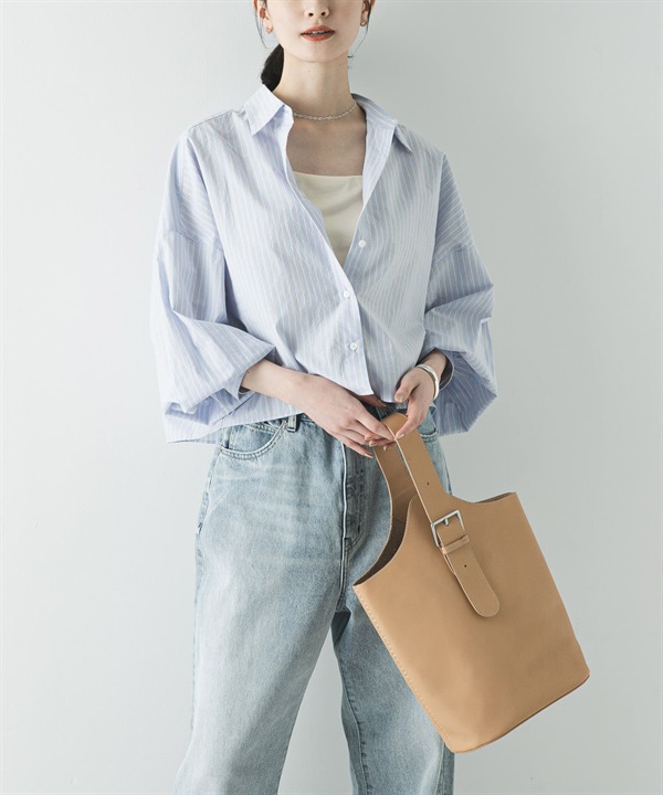 直條紋寬版襯衫