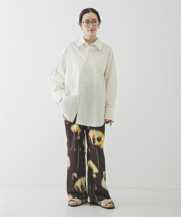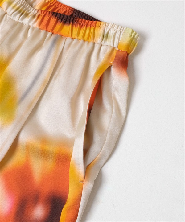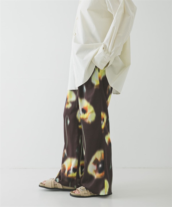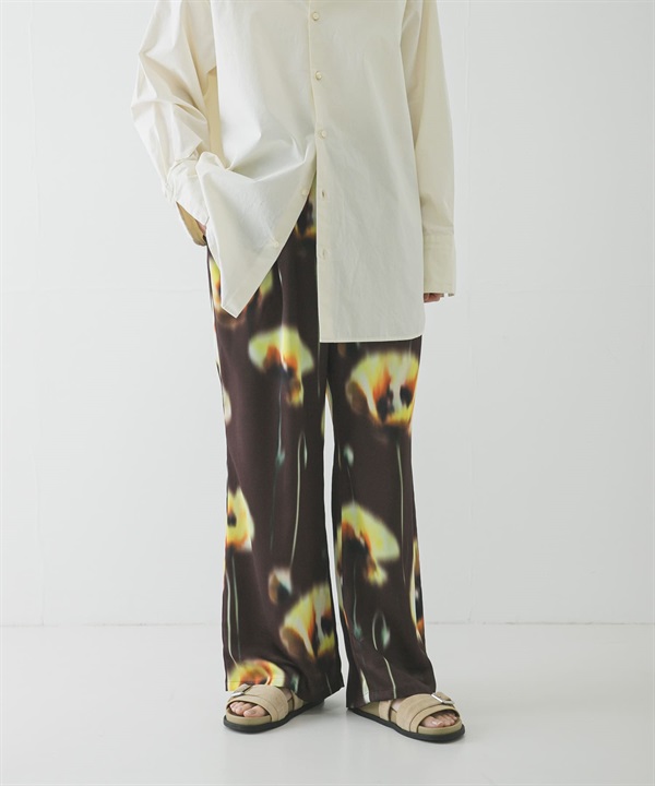 罌粟印花碎褶長褲