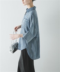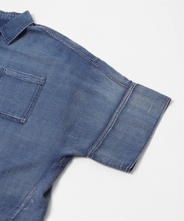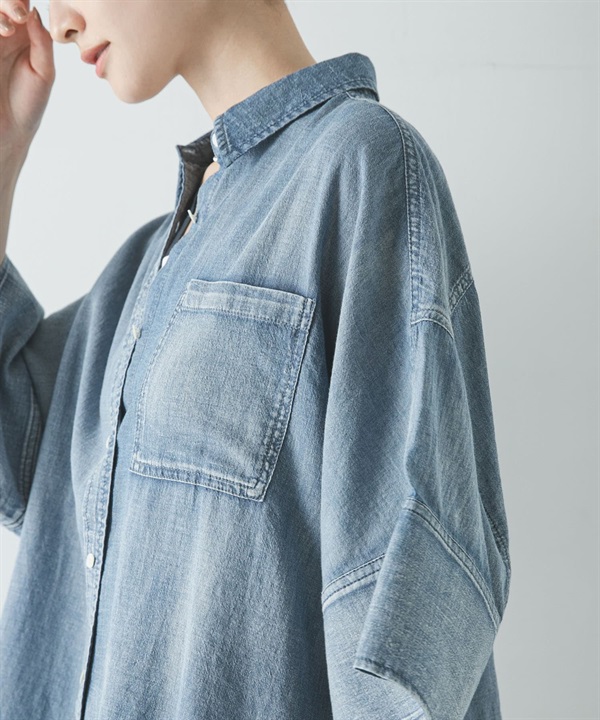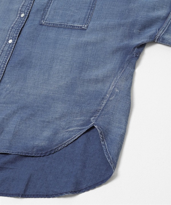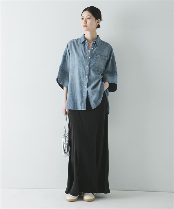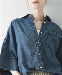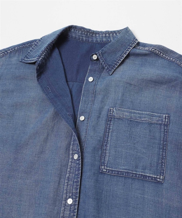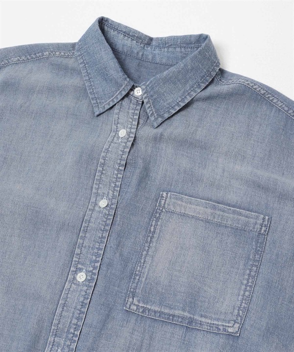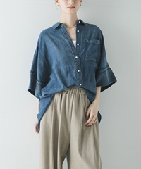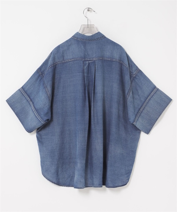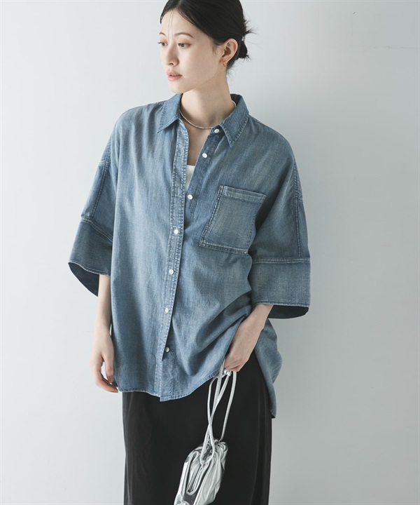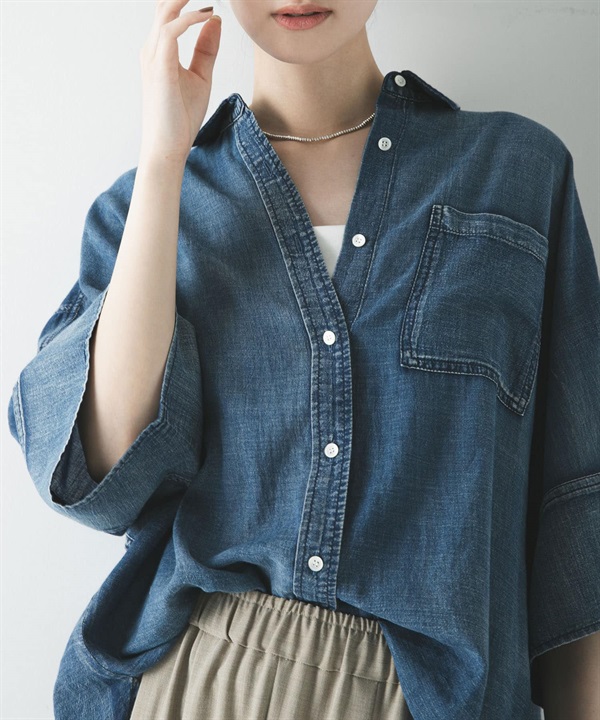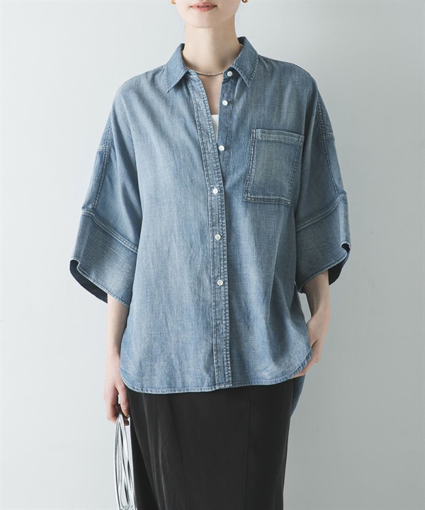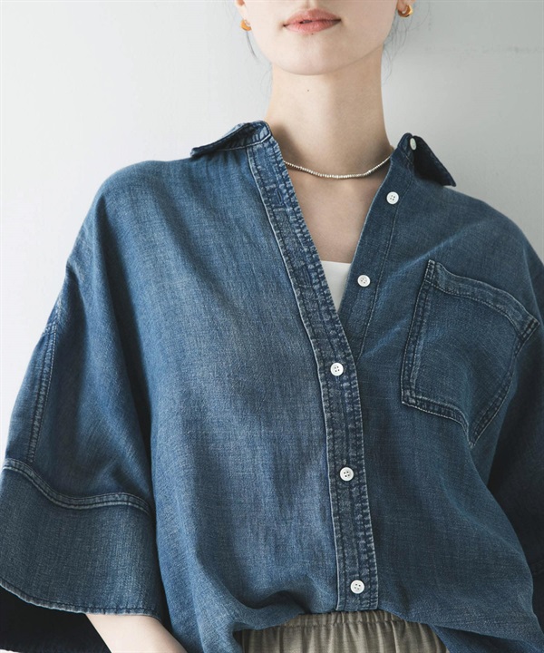 五分袖透膚牛仔襯衫