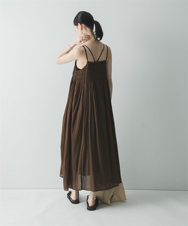 棉質巴里紗抽褶縫洋裝(附襯裙)