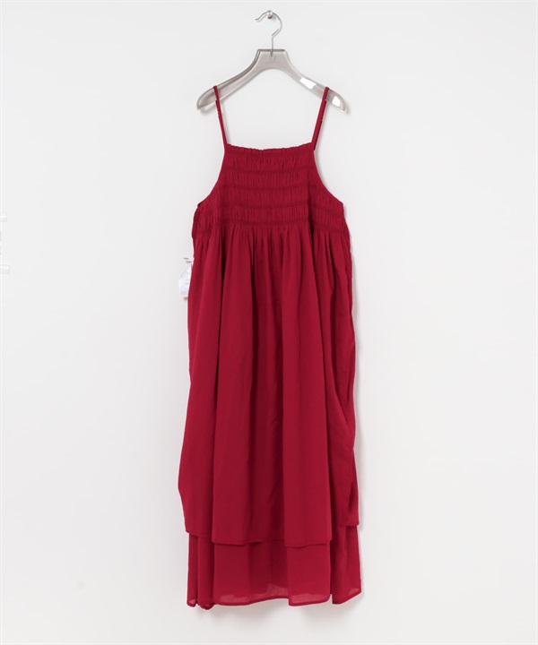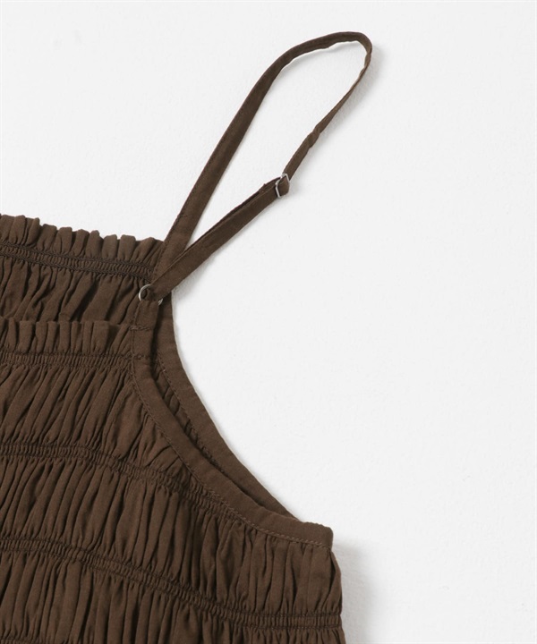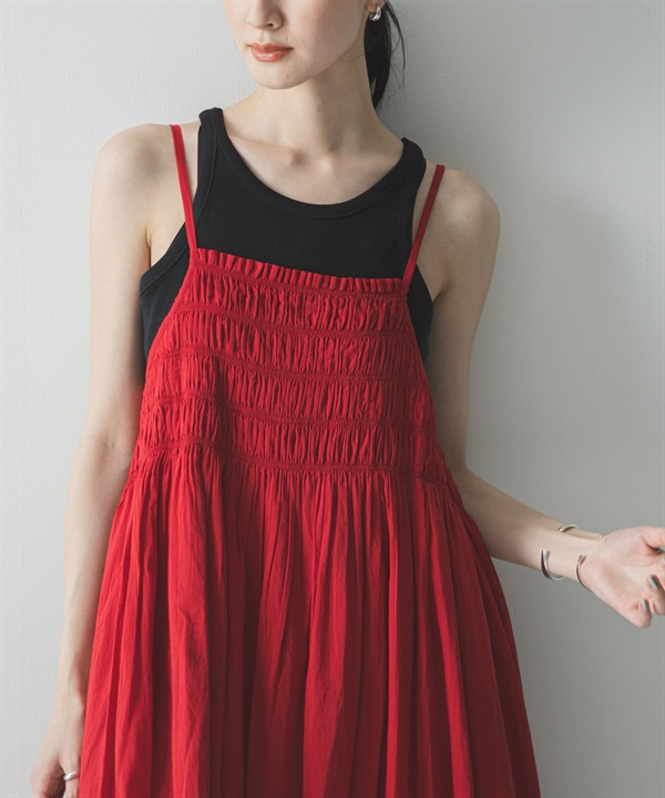 棉質碎褶細肩帶洋裝