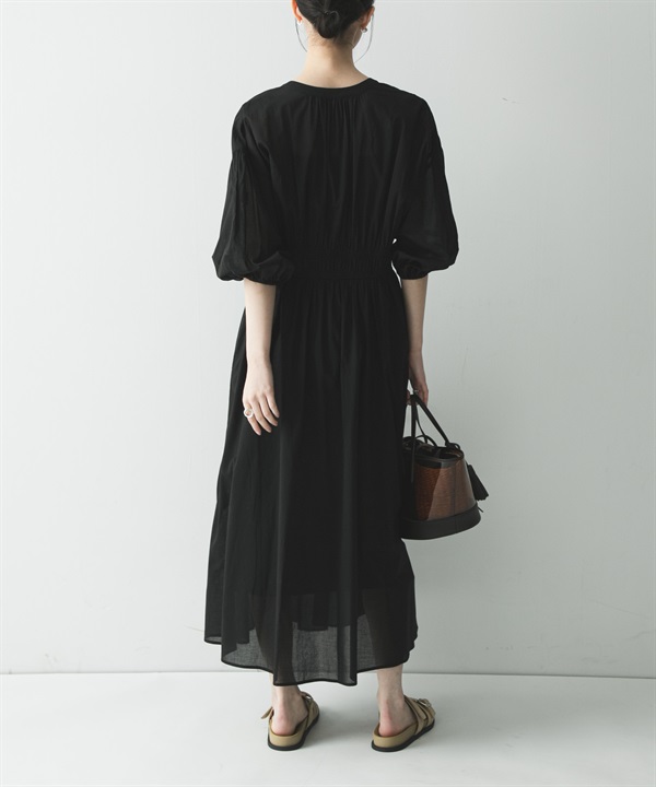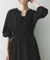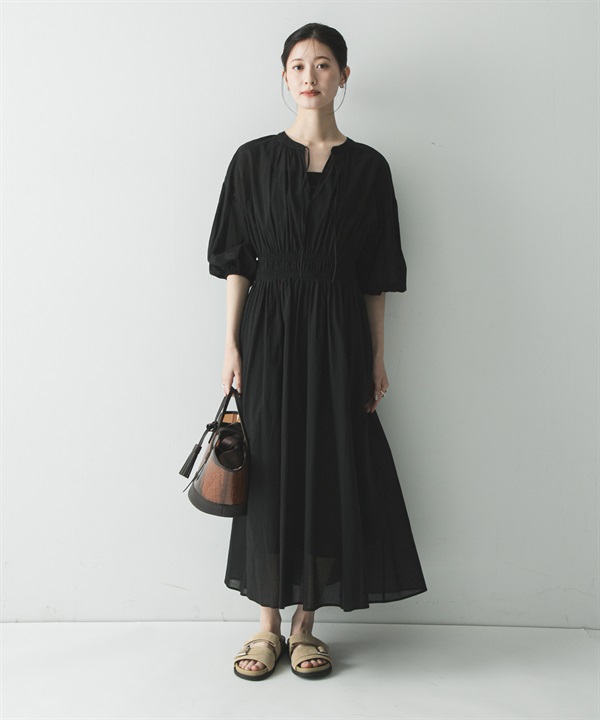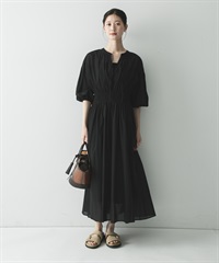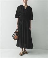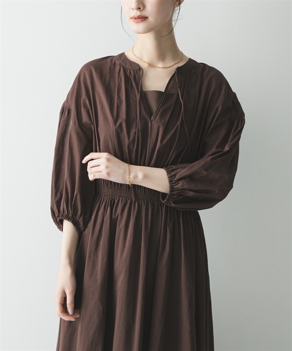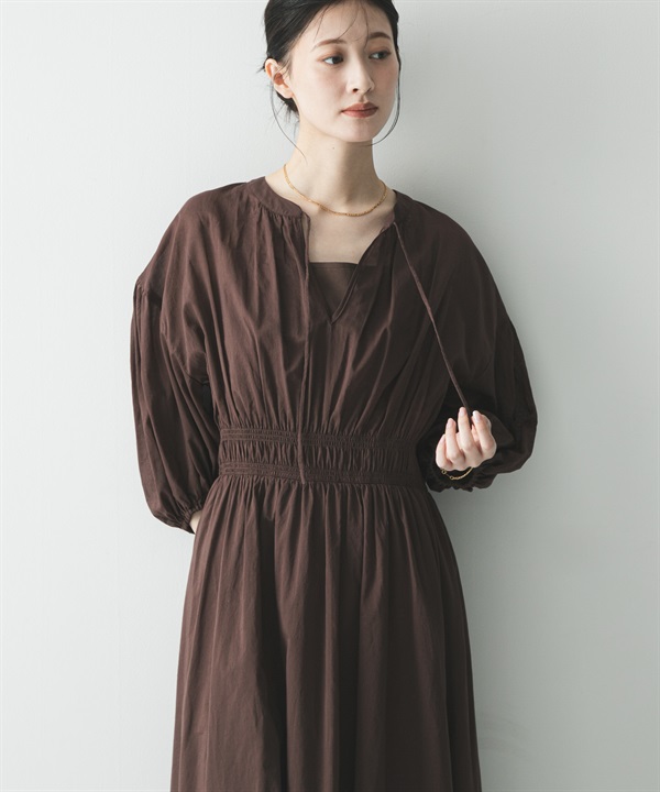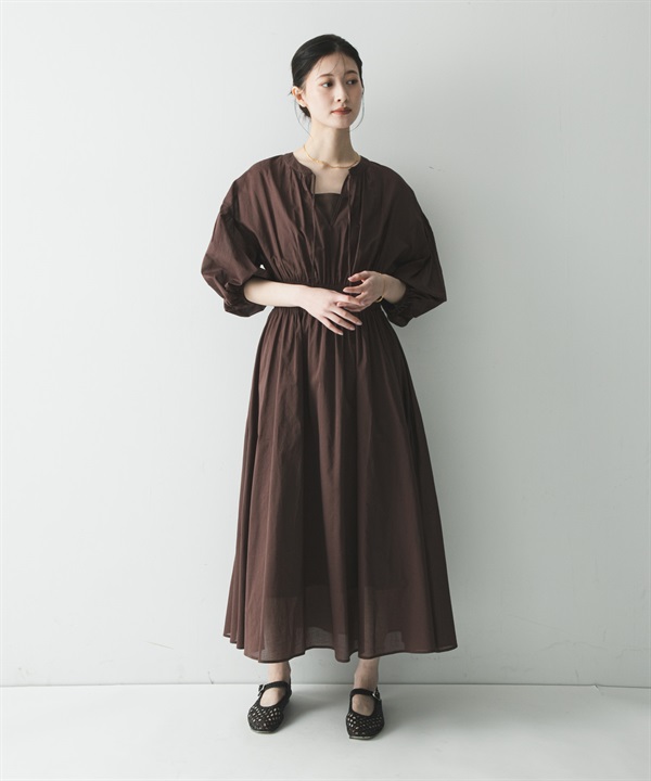 棉質巴里紗抽褶縫洋裝(附襯裙)