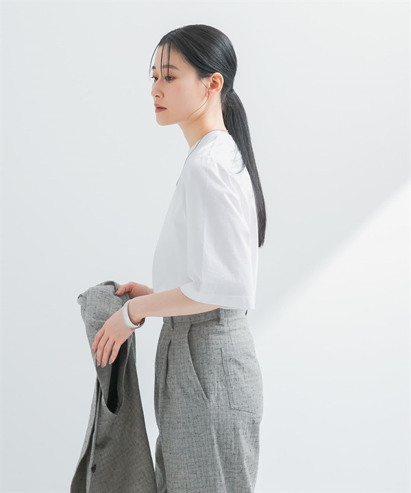 蓬鬆感袖型設計,領口略高的圓領設計。衣身俐落剪裁,搭配各式下身單品都能穿出好比例。