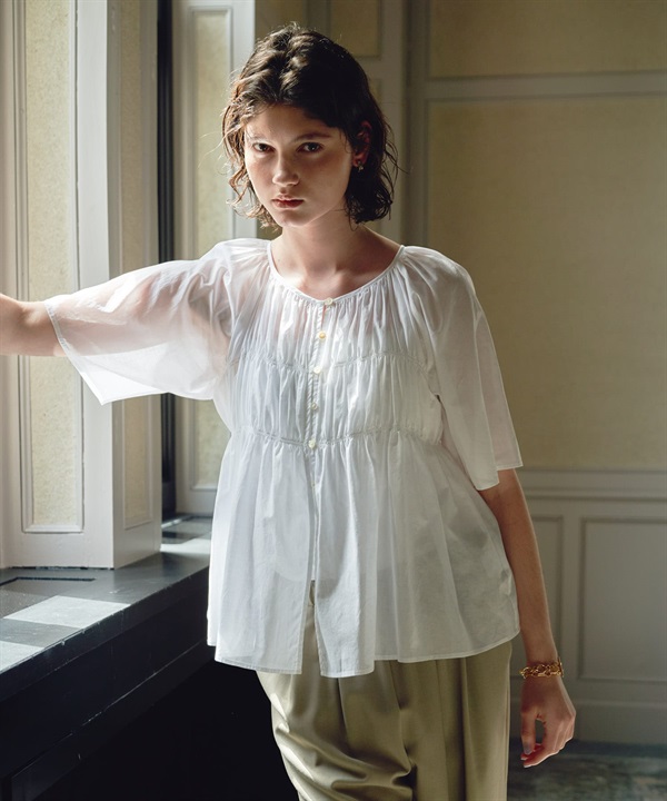 F by ROSSO 蕾絲滾邊大領片襯衫