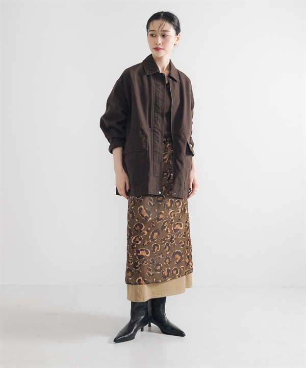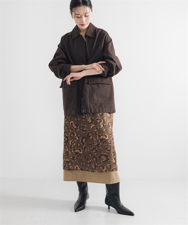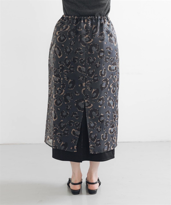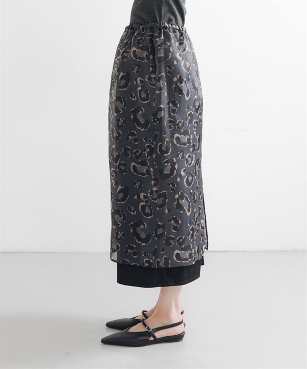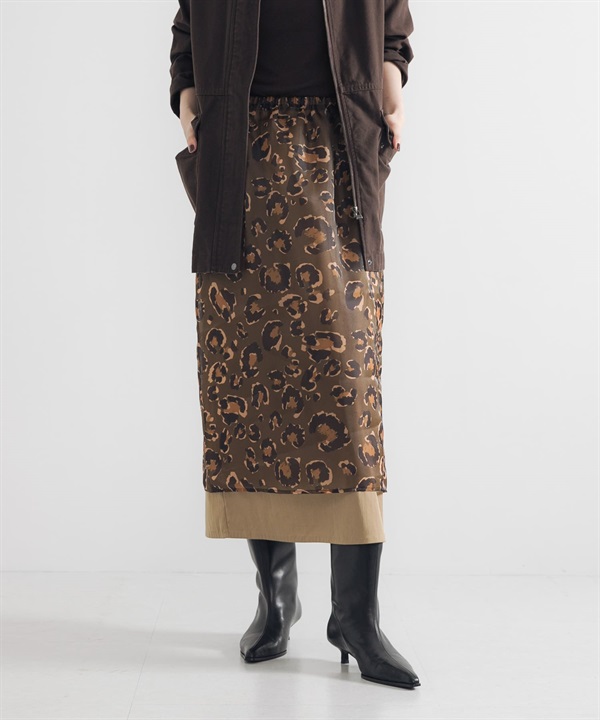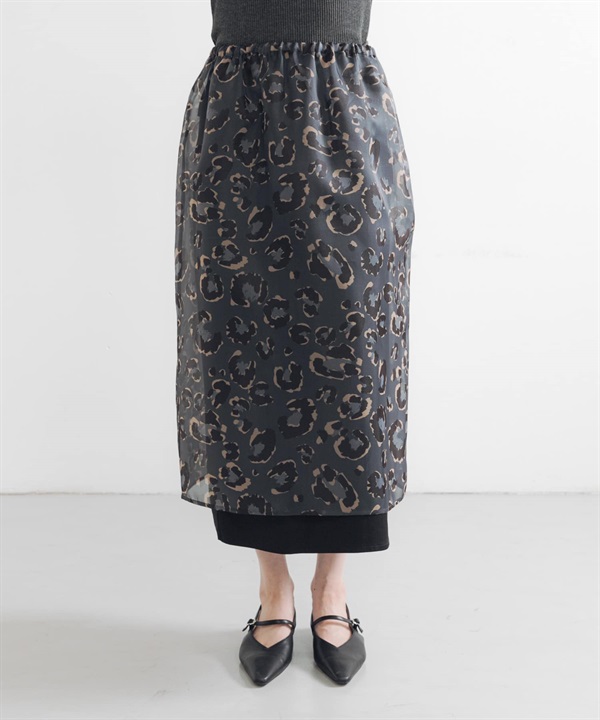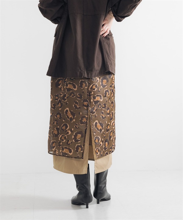 豹紋印花多層次長裙(附內搭裙)