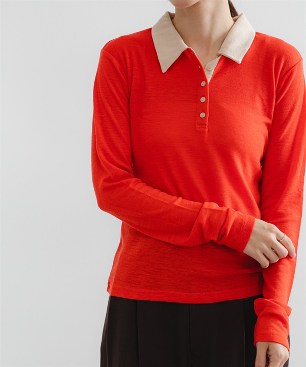 羊毛彈性POLO領上衣