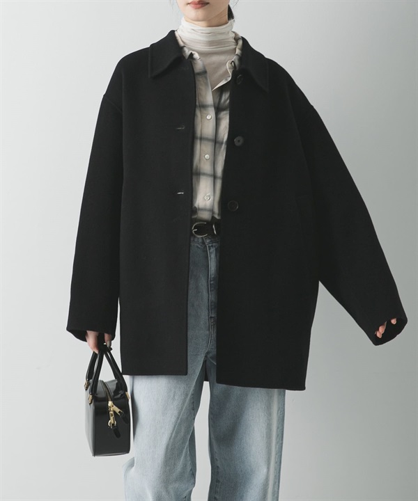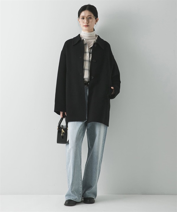 Super140立領雙面呢中長版大衣